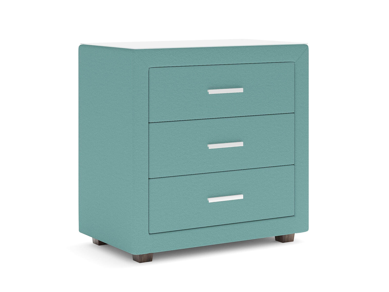 Элегантный комод отличается стильным дизайном и повышенным удобством. Три выдвижных ящика оснащены надёжными направляющими, обеспечивающими лёгкое открытие. Фасад ящиков и стенки комода покрыты обивочным материалом.