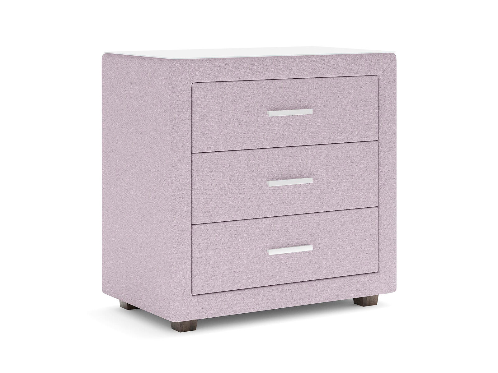 Элегантный комод отличается стильным дизайном и повышенным удобством. Три выдвижных ящика оснащены надёжными направляющими, обеспечивающими лёгкое открытие. Фасад ящиков и стенки комода покрыты обивочным материалом.