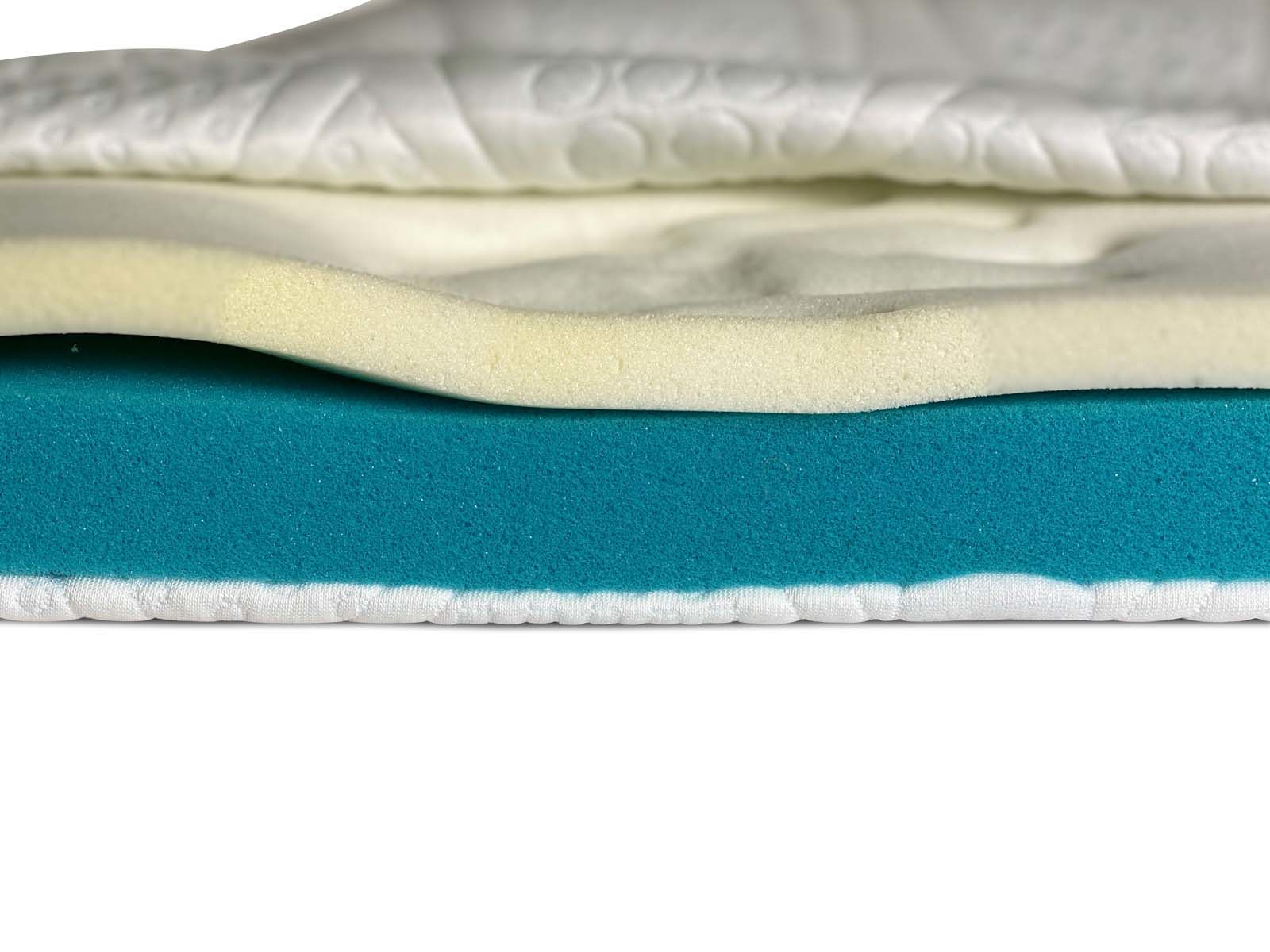 Топпер (наматрасник/тонкий матрас) Alfabed Entity – выполнен из двух вязкоэластичных слоев, которые отличаются по плотности и эффектам эластичности: