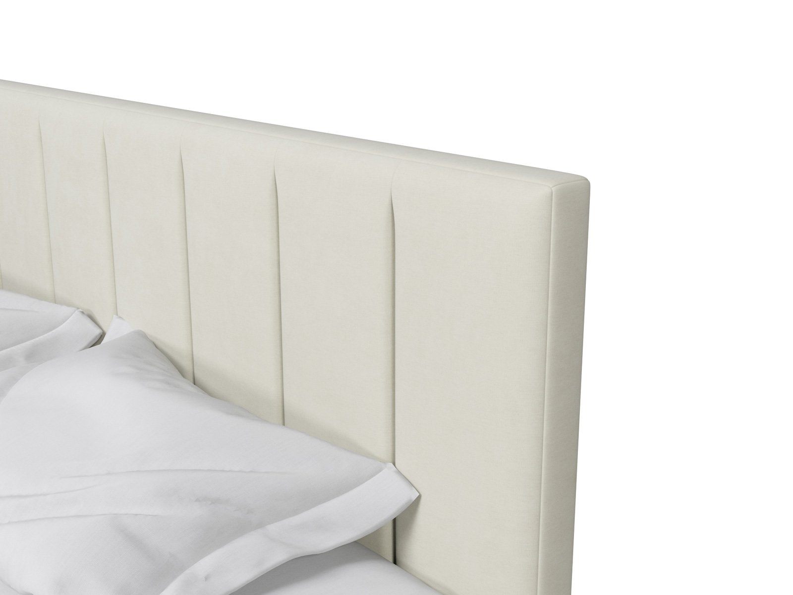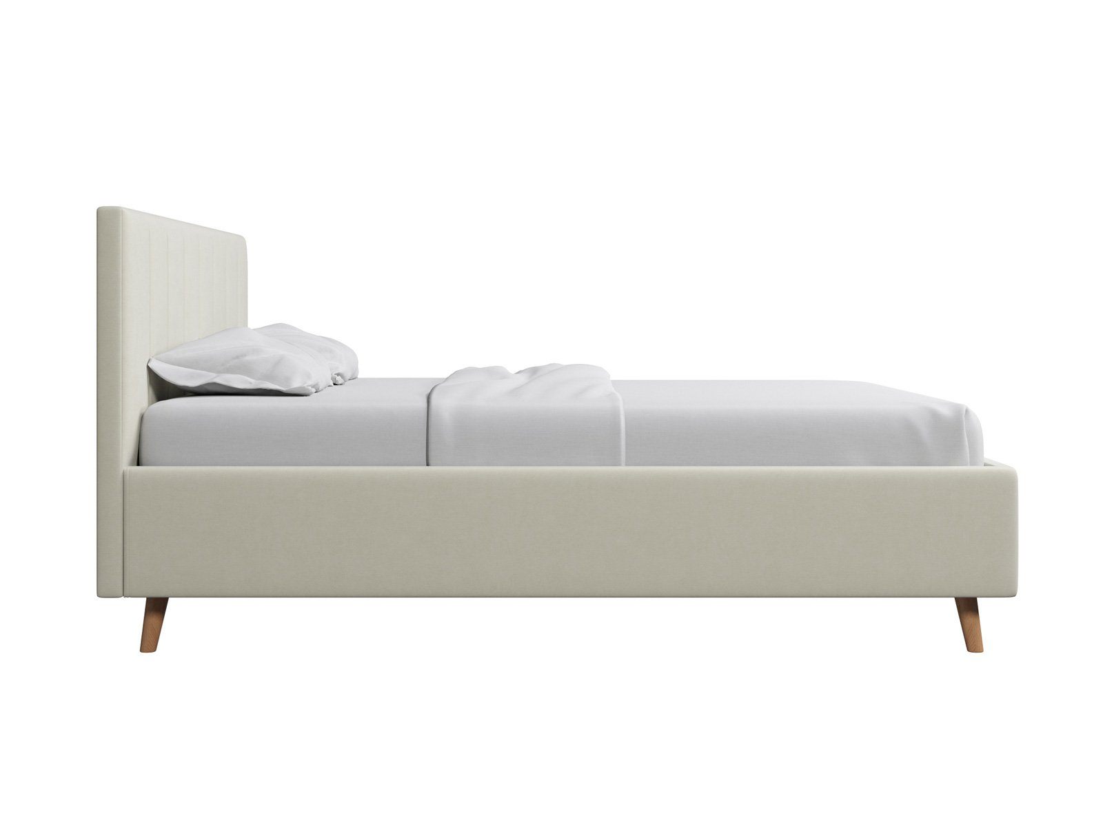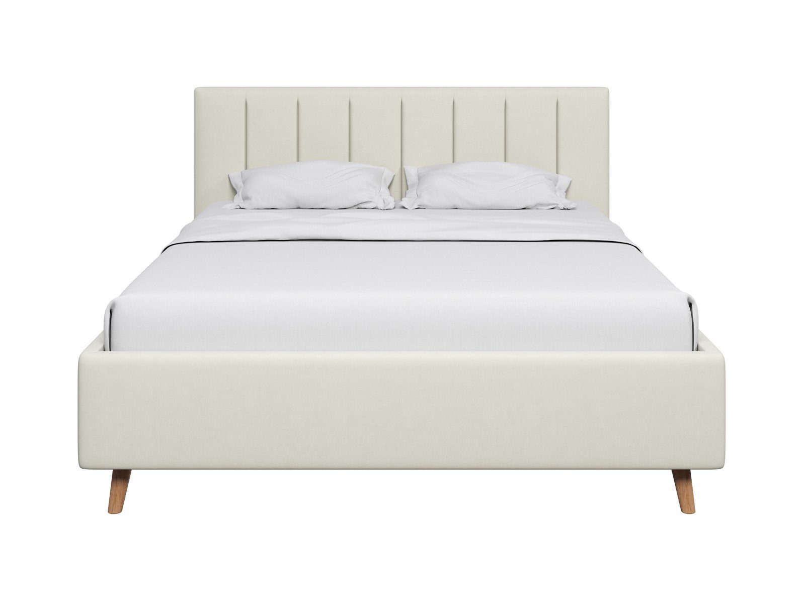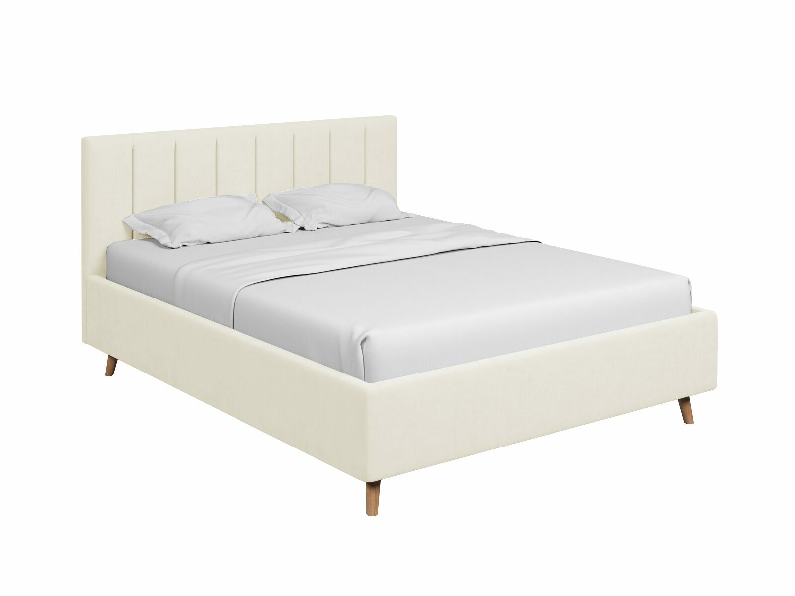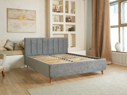 Кровать Амадора получила лёгкий и элегантный дизайн. Изголовье с мягкими вертикальными секциями украсит любую спальню и добавит уюта месту отдыха. Изящные наклонные ножки из дерева визуально облегчают конструкцию и обеспечивают просвет над полом, где легко пройдёт робот-пылесос.