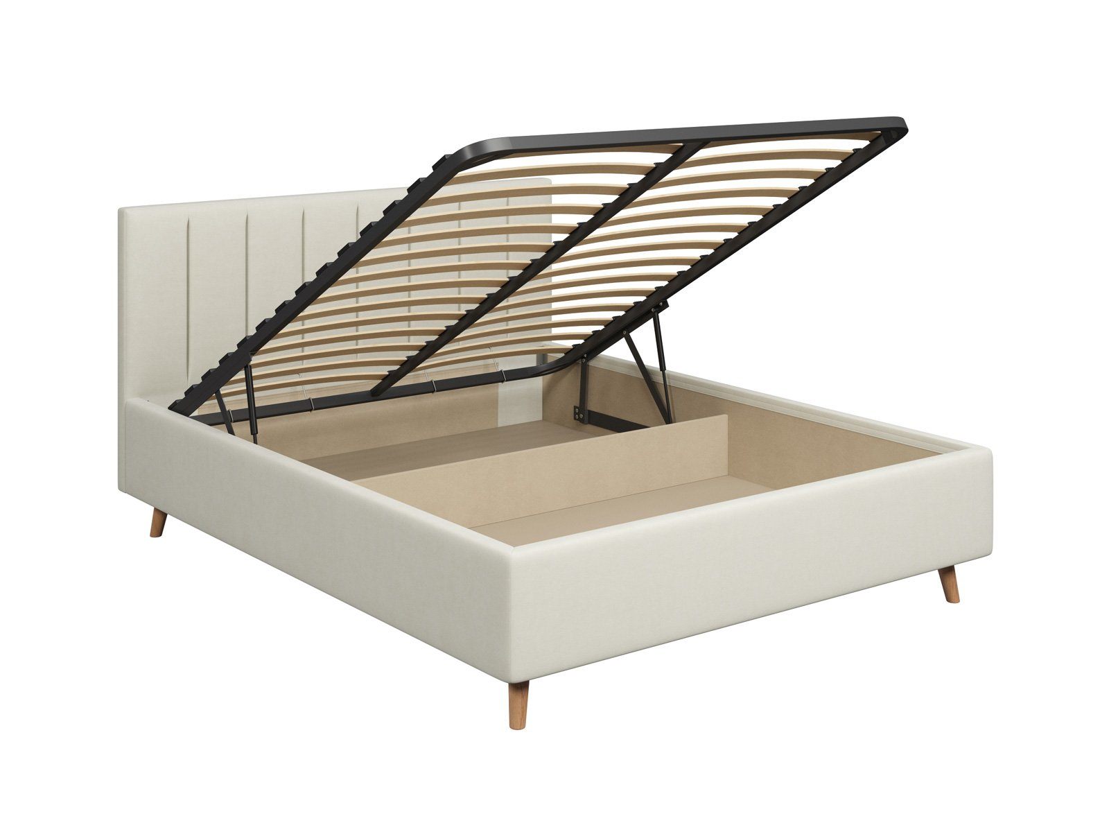 Модель комплектуется ортопедическим основанием с подъёмным механизмом. Система обеспечивает более качественную работу ортопедического матраса за счёт гармоничного распределения нагрузки с помощью гибких и адаптивных ламелей. Встроенные газлифты легко поднимают основание, благодаря чему открывается доступ к бельевому коробу. Здесь вы сможете хранить постельное бельё, аксессуары для сна и просто сезонные вещи.