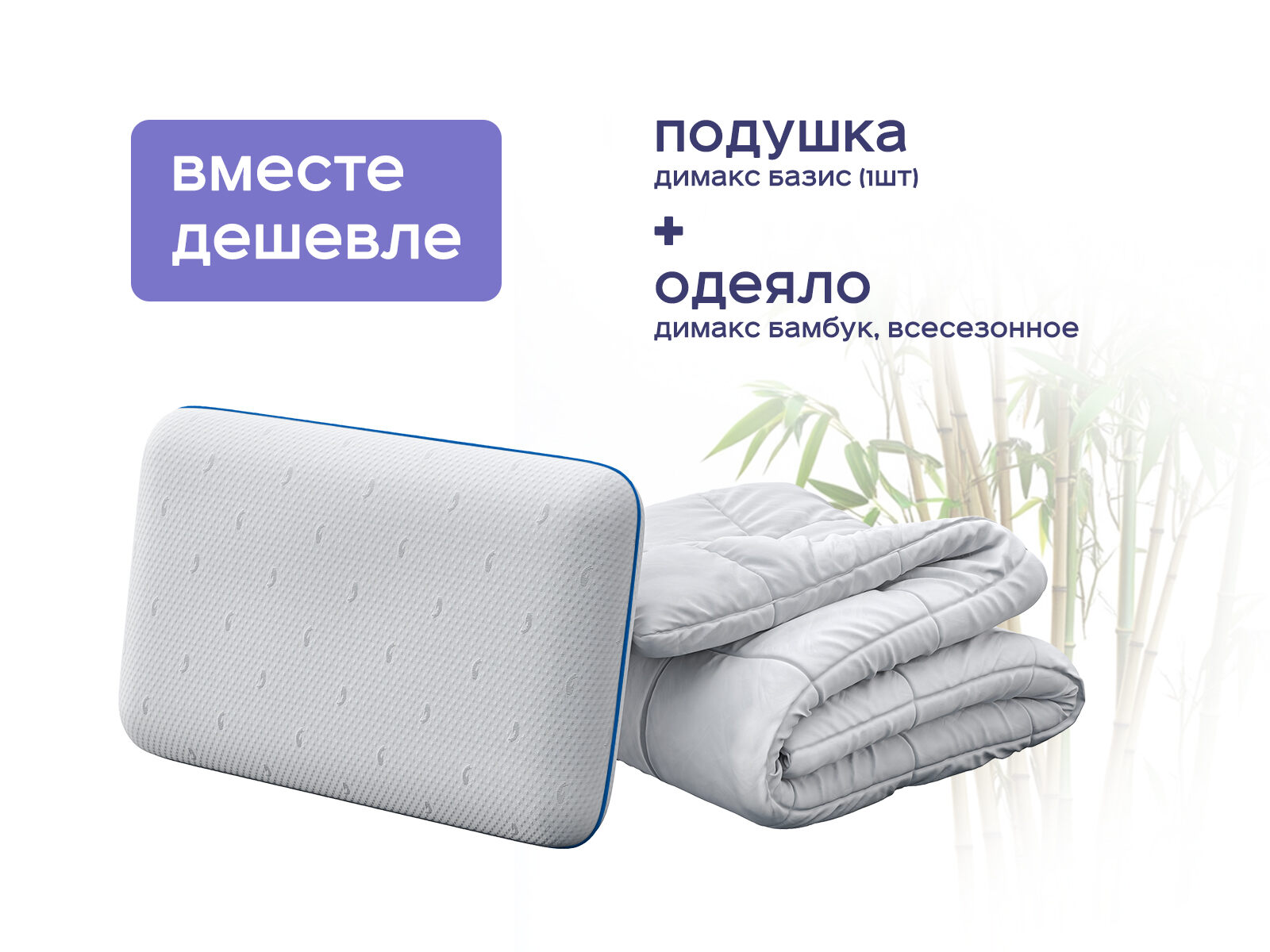 Комплект одеяло Димакс Бамбук всесезонное + подушка Димакс Базис 1 шт. – природа и инновации на страже здорового сна! Хотите, чтобы ваш сон был таким же крепким, как на природе? Этот комплект объединяет силу бамбука и современные технологии для создания идеального микроклимата. Одеяло с бамбуковым наполнителем охлаждает летом и удерживает тепло зимой, а подушка Базис с пеной мемори подстраивается под каждую линию тела. И всё это с экономией до 45%, получая два продукта в одном наборе.