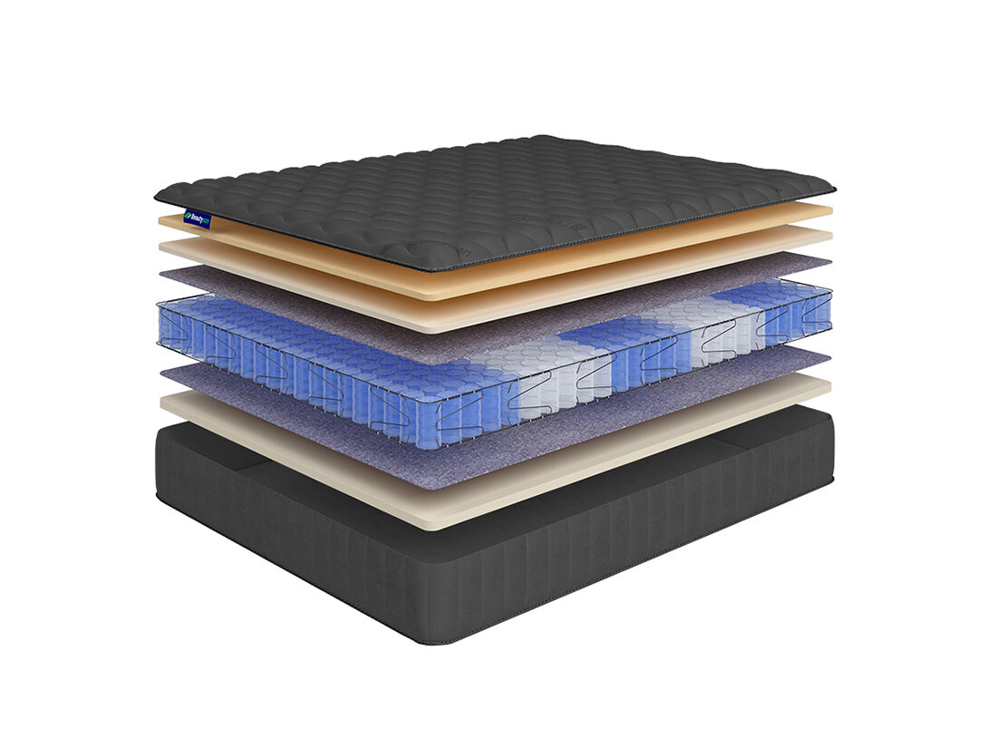 Hit Ecosoft Memory Lux TFK+ выполнен на основе независимого пружинного блока плотностью 600 пружин на спальное место, обеспечивающего оптимальную анатомическую поддержку спящему человеку. 5 зон жёсткости пружин в матрасе соответствуют каждой зоне тела человека, обеспечивая тем самым равномерное распределение веса тела и нахождение позвоночника в естественном положении.