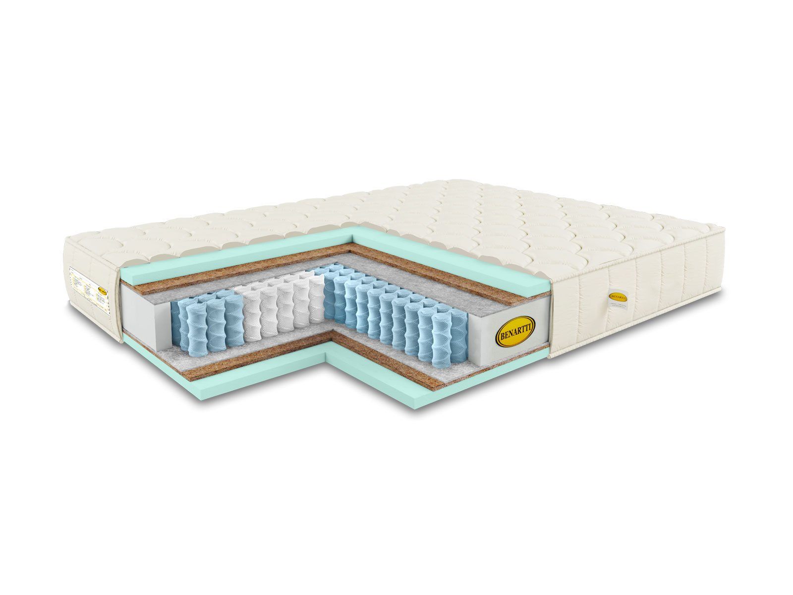 В состав изделия включены такие наполнители как койра кокоса и искусственный латекс. Эти материалы не скапливают пыль и неприятные запахи, не задерживают воду и что важно – отлично проветриваются. Их структура позволяет пропускать воздух в толщу слоёв, а как известно, микроклимат спальной зоны не менее важен для здорового сна, чем знаменитый ортопедический эффект.