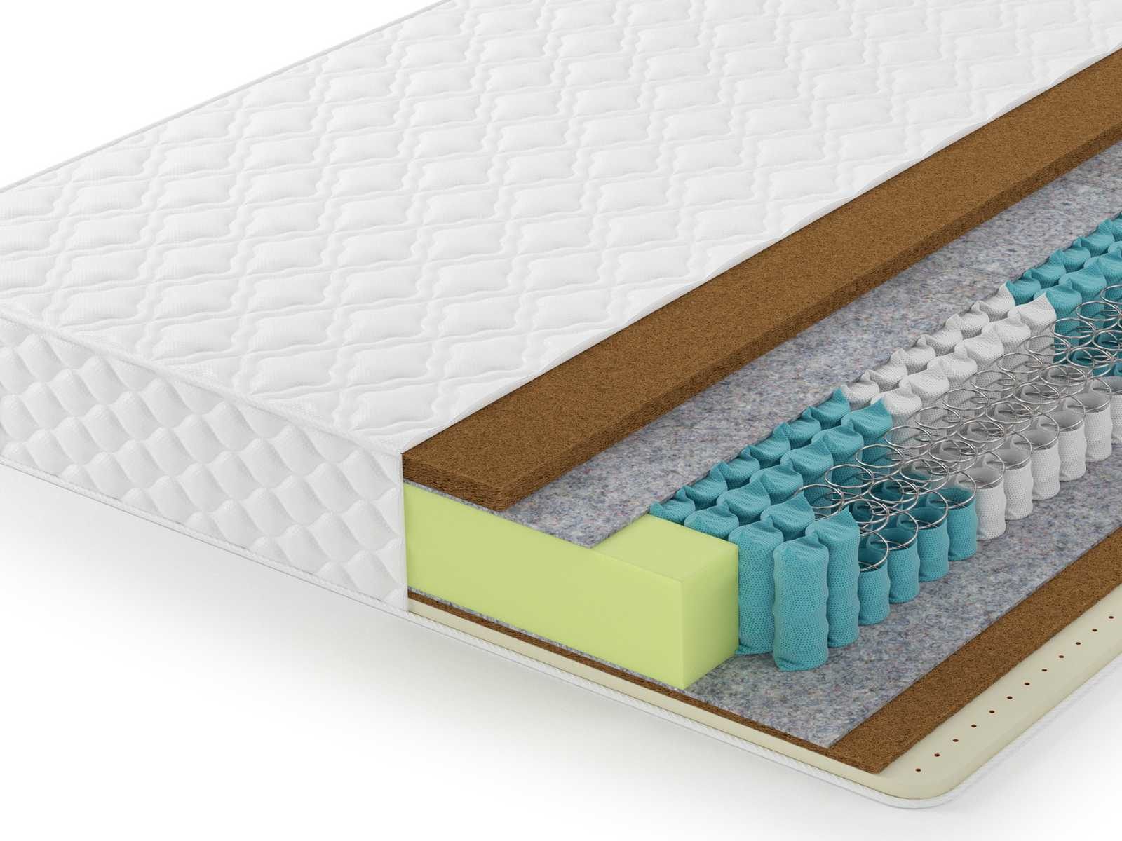 Одна сторона модели высокой жесткости, за счет использования латексированной кокосовой койры — наполнитель из кокосового ореха. Прекрасно вентилируемый, не впитывает запахов, не впитывает влагу, не гниет, обладает хорошими ортопедическими свойствами. Прочный, надежный материал с длительным сроком эксплуатации.