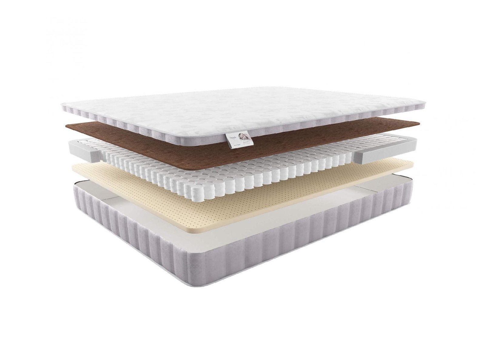Внутри матрас представлен такими натуральными наполнителями как природные латекс и койра. Именно они обеспечивают различный комфорт каждой из сторон модели.