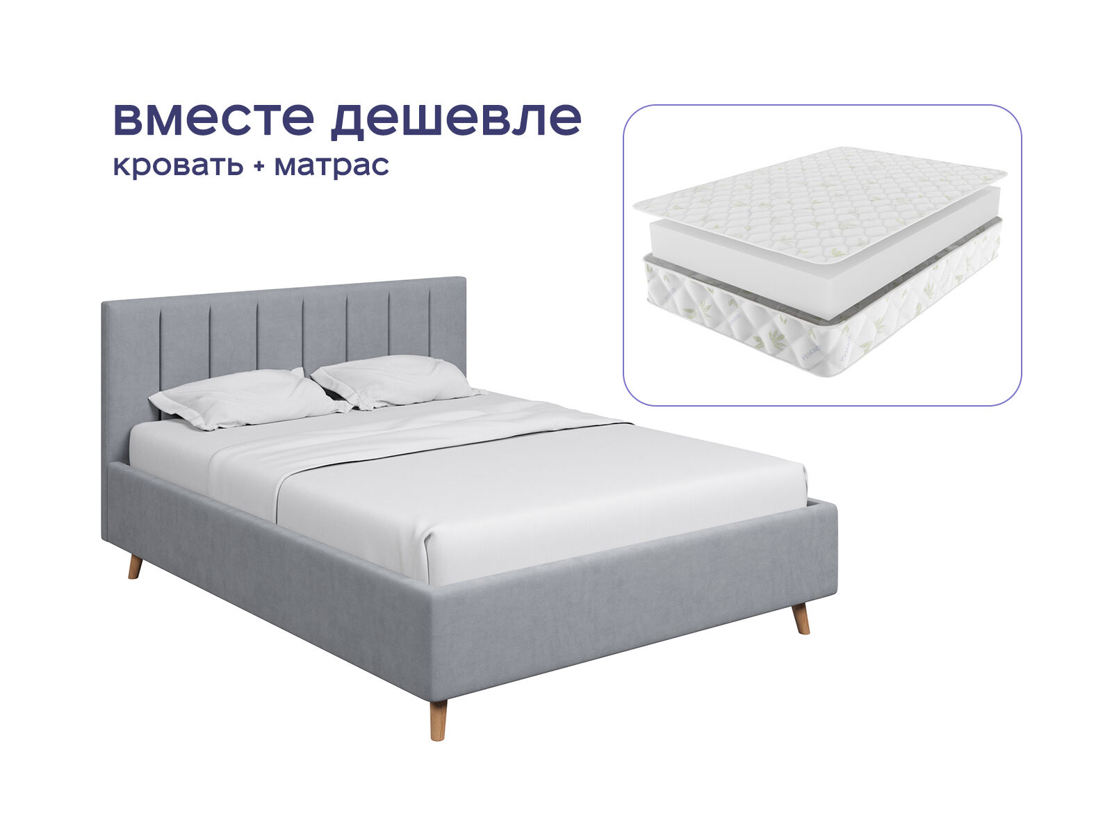 Кровать получила лёгкий и элегантный дизайн. Изголовье с мягкими вертикальными секциями украсит любую спальню и добавит уюта месту отдыха. Изящные наклонные ножки из дерева визуально облегчают конструкцию и обеспечивают просвет над полом, где легко пройдёт робот-пылесос. Корпус кровати выполнен из ДСП. Для обивки кровати используется велюр – мягкий и бархатный материал, который предпочитают ценители нежных прикосновений. В комплект входит ортопедическое металлическое разборное основание.