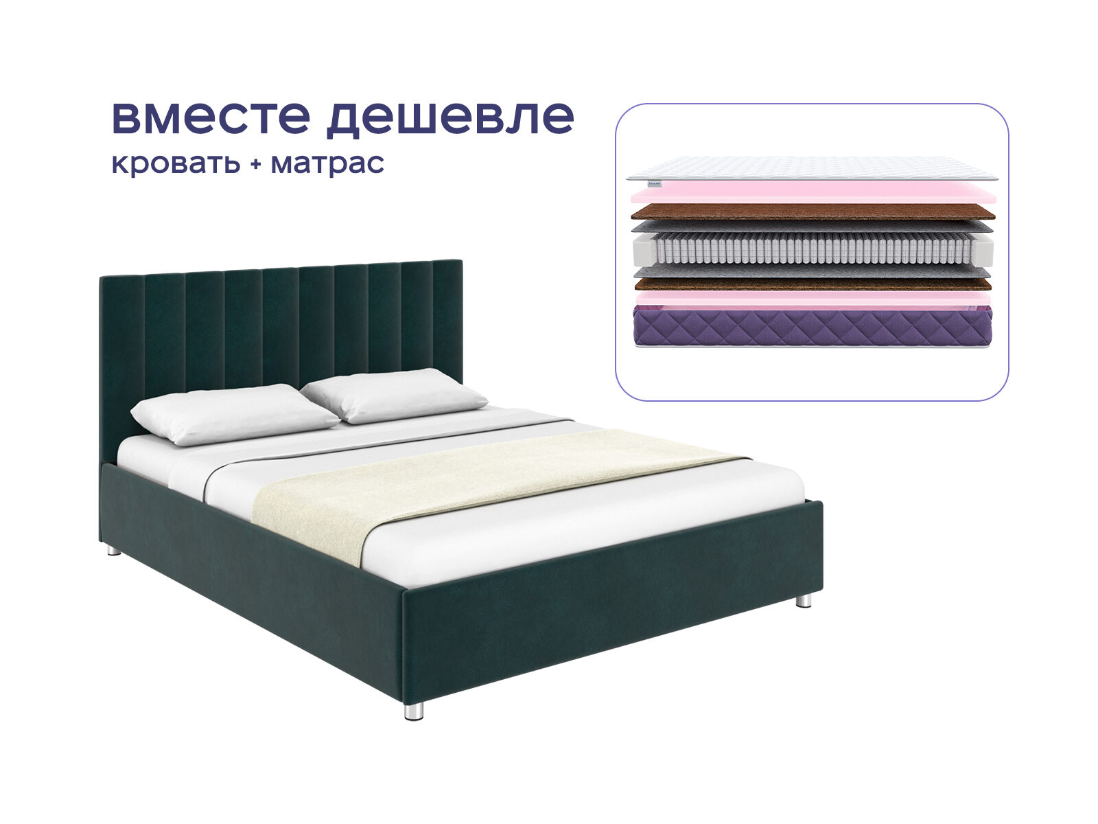 Комплект Лероса + Базилик Энерджи 23 Медиум — это идеальное сочетание элегантного минимализма и инновационной поддержки для вашего сна. Приобретая набор, вы экономите до 36%, получая стильную мебель с ортопедическим основанием и матрас, обеспечивающий здоровый и комфортный сон. Доверьтесь продуманной комбинации эстетики и функциональности и создайте спальное пространство, где каждая деталь работает на ваш отдых.