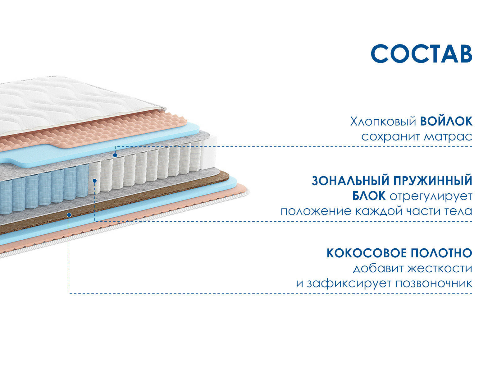 Эта модель идеально подойдёт для тех, кто ищет качественный и многофункциональный матрас. Разные уровни жёсткости, зональная поддержка и массажный эффект делают модель надёжным спутником для полноценного отдыха.