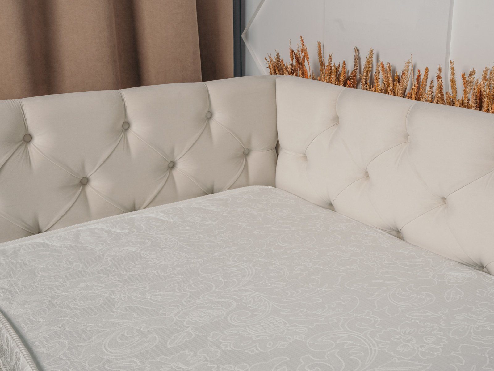 Кровать Бриони обладает элегантным лаконичным дизайном и изящно впишется в детскую комнату, спальню или гостиную. Каретная стяжка и декоративные пуговицы добавляют особую изысканность и утонченность изголовью и спинке модели.