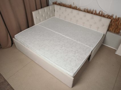 Кровать комплектуется раздвижным основанием, которое лёгким движением руки превращает односпальную кровать в двуспальную. Модель позволит сэкономить пространство в помещении, не жертвуя при этом вашим комфортным сном.