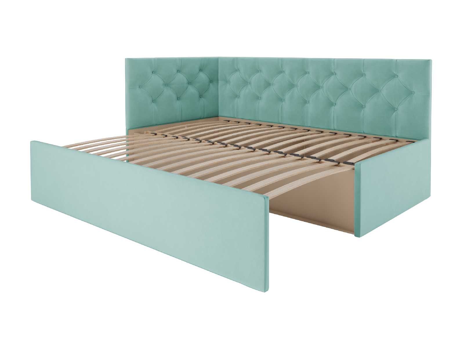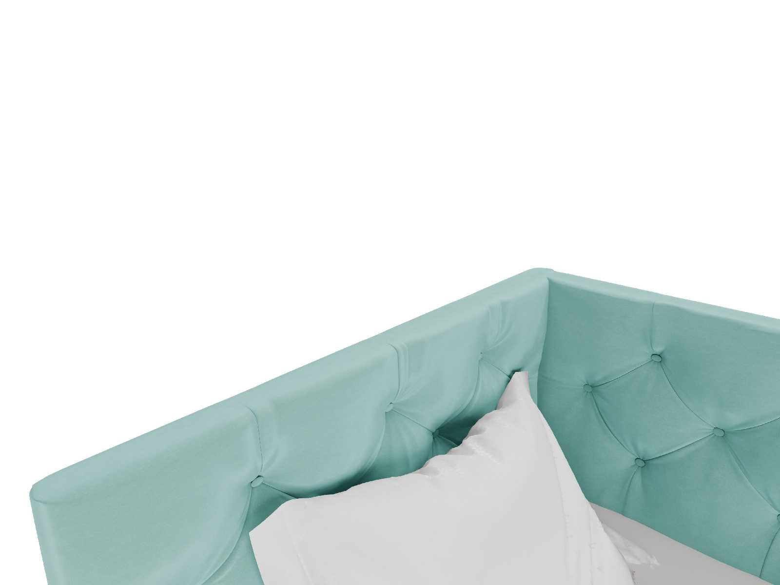 Кровать Бриони обладает элегантным лаконичным дизайном и изящно впишется в детскую комнату, спальню или гостиную. Модель можно использовать в том числе как диван, поскольку она оснащена уютным угловым изголовьем. Спинка мебели получила мягкую стёжку, оформленную каретной стяжкой. Пуговицы обтянуты той же тканью, что и основное изделие. Угловая структура кровати позволяет существенно сэкономить пространство и обеспечить при этом комфортный отдых.