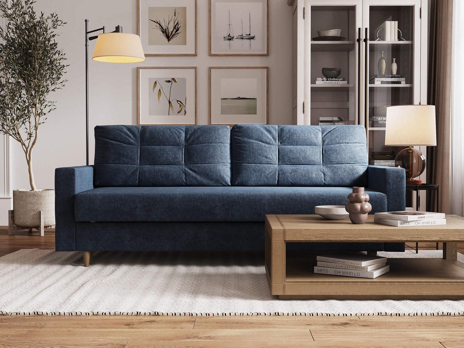 Современный диван Scandy с механизмом трансформации «Пантограф». В основе дивана полноценный ортопедический матрас на независимом пружинном блоке, усиленном слоем натуральной латексированной кокосовой коры. Комфортная глубина и высота сиденья обеспечит ежедневный комфорт. Задняя спинка защищает от прикосновения со стеной во сне, а стену – от возможных повреждений и загрязнений. В основе мягких подушек – микс наполнителей: поролоновая крошка защищает от деформации, а синтетическое волокно добавляет мягкость и упругость – для бережной поддержки спины. Подушки убираются во вместительный бельевой ящик с вентиляционным отверстием в разложенном состоянии дивана. Высокие элегантные опоры из массива (цвет на выбор - бук или венге) упростят уборку и позволяют работать современным роботам-пылесосам.