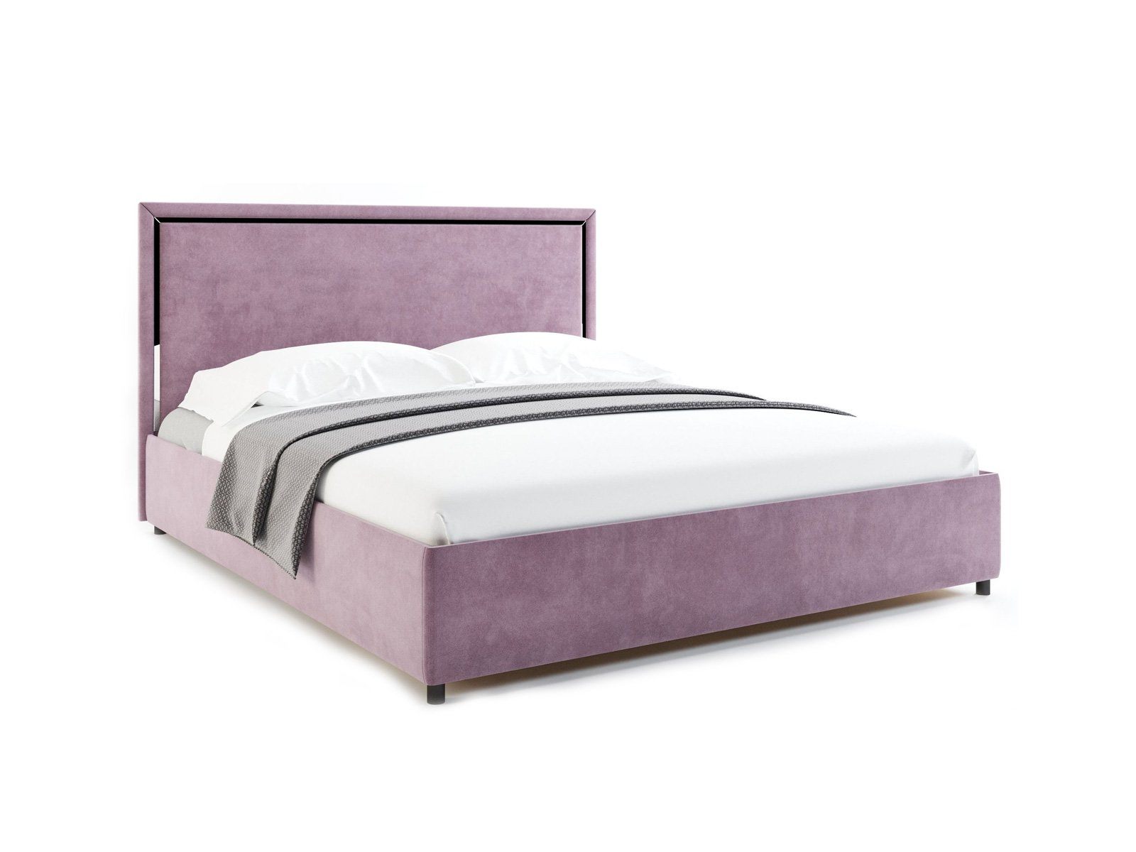 Спейс — кровать в современном стиле. Прямое мягкое изголовье украшено тонкой зеркальной вставкой по периметру.