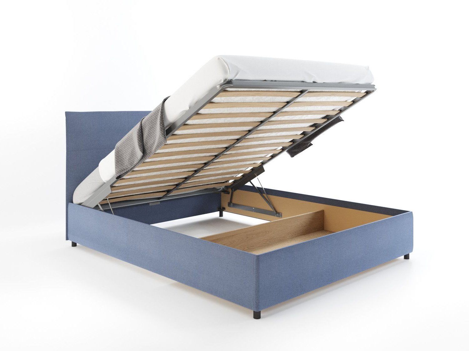 Каркас изголовья и царги кровати изготовлены из ДСП. Модель укомплектована подъемным механизмом с двумя газовыми амортизаторами. Опционально - кровать может быть укомплектована только металлическим основанием под матрас (без подъёмного механизма) или вовсе без основания и подъёмного механизма. Отсек для хранения постельных принадлежностей с вкладным полом на 1/2 кровати.