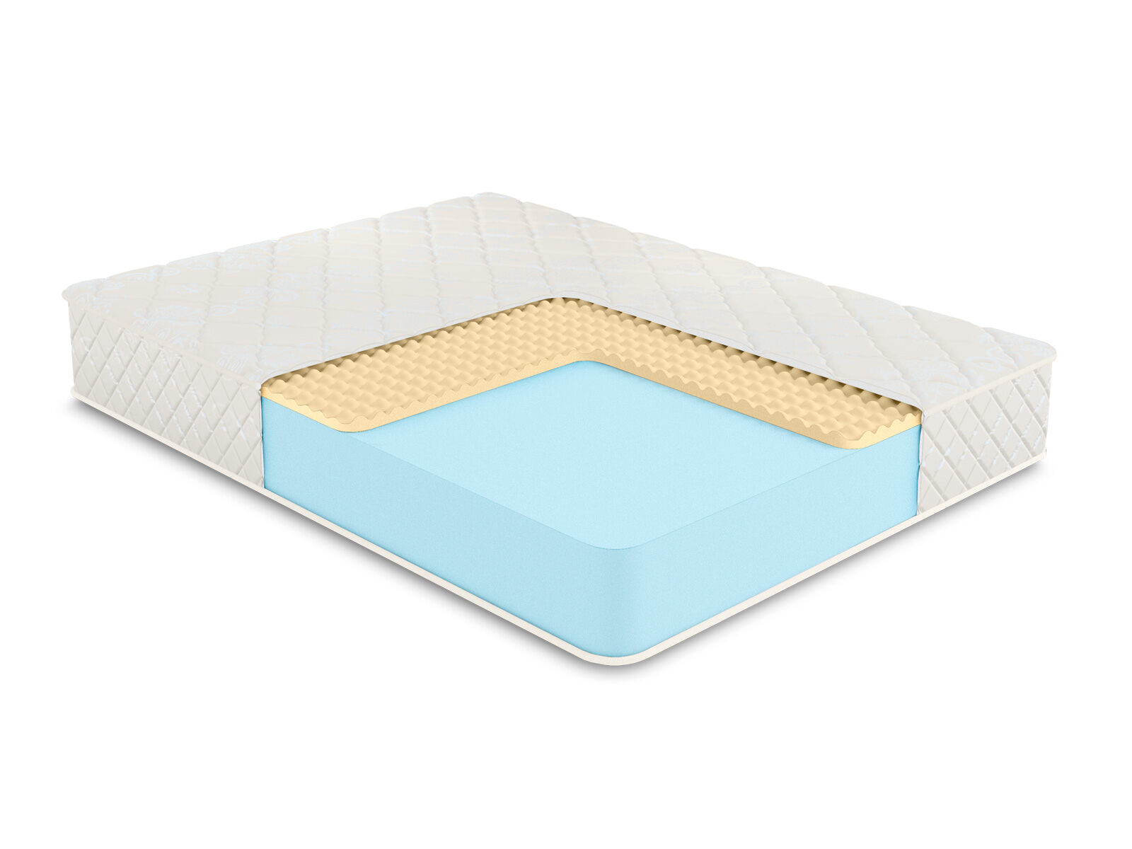 Чехол матраса из хлопкового жаккарда, который обладает высокой износостойкостью, простеган на Холлконе и имеет очень длительный срок службы. Ткань чехла может немного отличаться по рисунку, а также по оттенку цвета, это не влияет на ее свойства и качество.