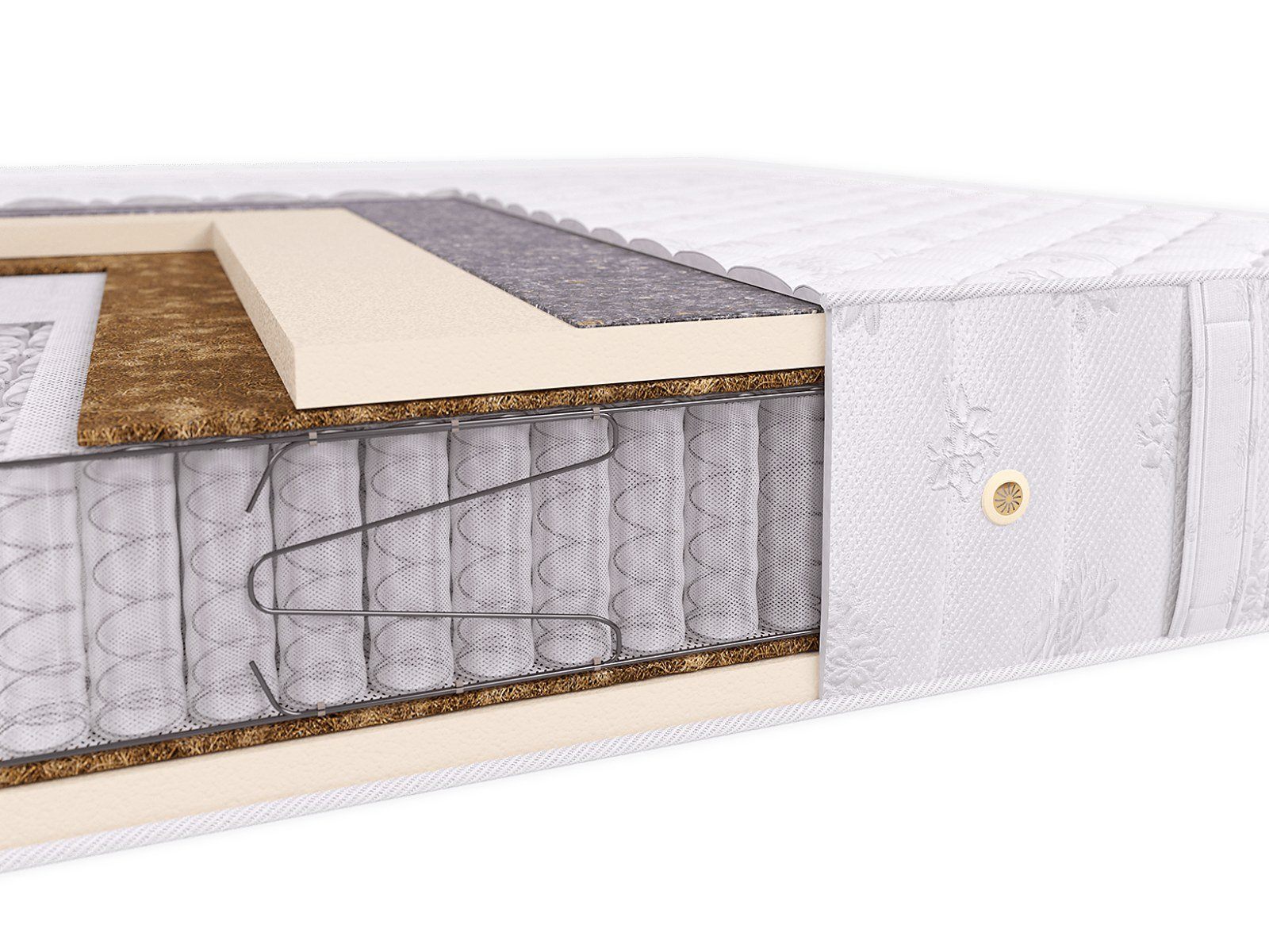 Матрас Эко Престиж S1200 выполнен на основе пружинного блока "Мультипакет", обеспечивающего комфортную анатомическую поддержку телу спящего, искусственного латекса и эко-кокоса (смесь натуральных кокосовых волокон со струттофайбером). Данный матрас имеет симметричную конструкцию и обладает одинаковой средней жёсткостью обеих сторон. Слои эко-кокоса придают матрасу оптимальную жёсткость, а благодаря уникальным адаптационным свойствам искусственного латекса поверхность матраса идеально подстраивается под тело спящего, обеспечивая непревзойдённый комфорт во время сна.