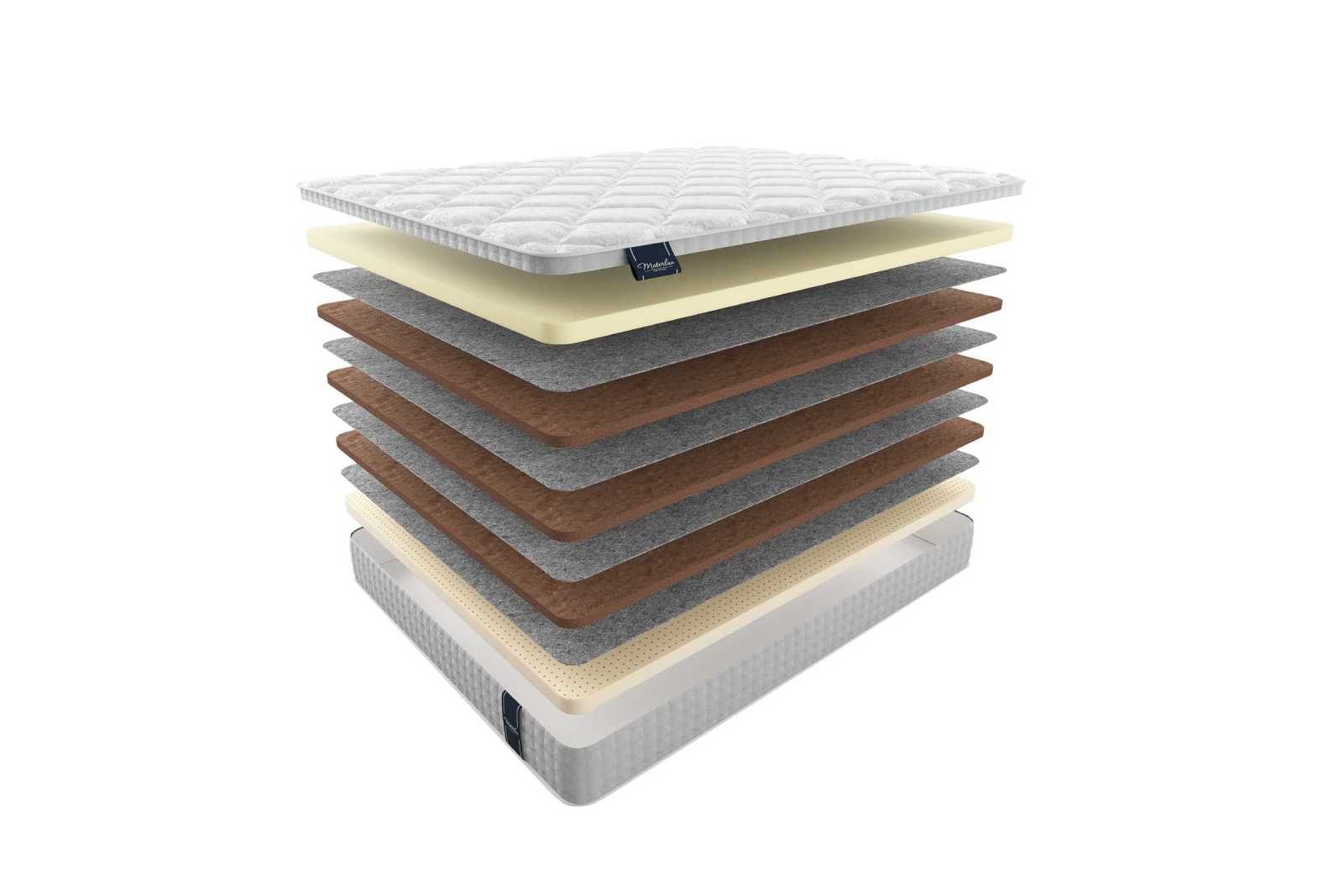 Так как верхние слои матраса обеспечены достаточно мягкими наполнителями, то их необходимо дополнить жёстким основанием для устойчивости. Именно такой базой выступает койра кокоса, представленная в самом центре модели. Плиты койры не только отвечают за сбалансированность, но и дают правильную ортопедическую поддержку спине человека.