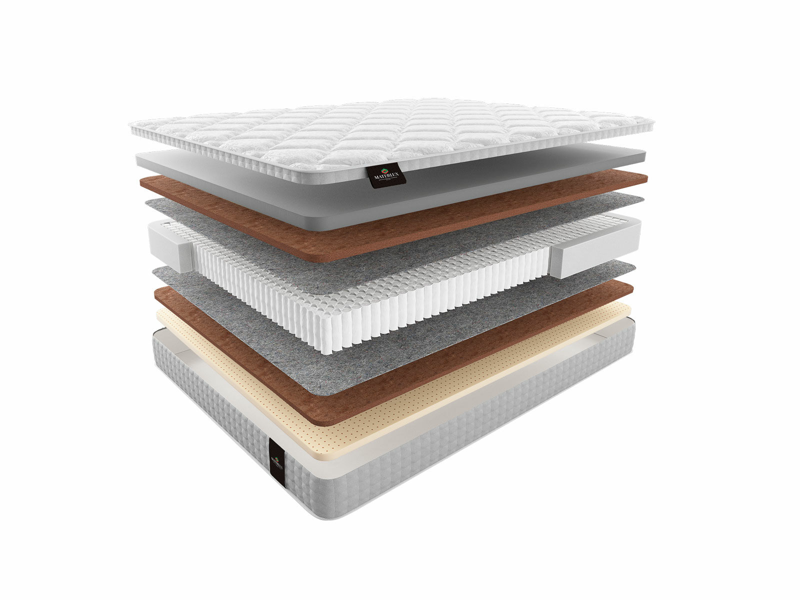 Латексированная кокосовая койра (пл 100; 3 см): этот натуральный материал обеспечивает прочность и долговечность матрасу. Он не проминается и сохраняет свои свойства в течение многих лет. Кокосовая койра также обладает хорошими вентиляционными свойствами, что делает матрас более комфортным и гигиеничным.