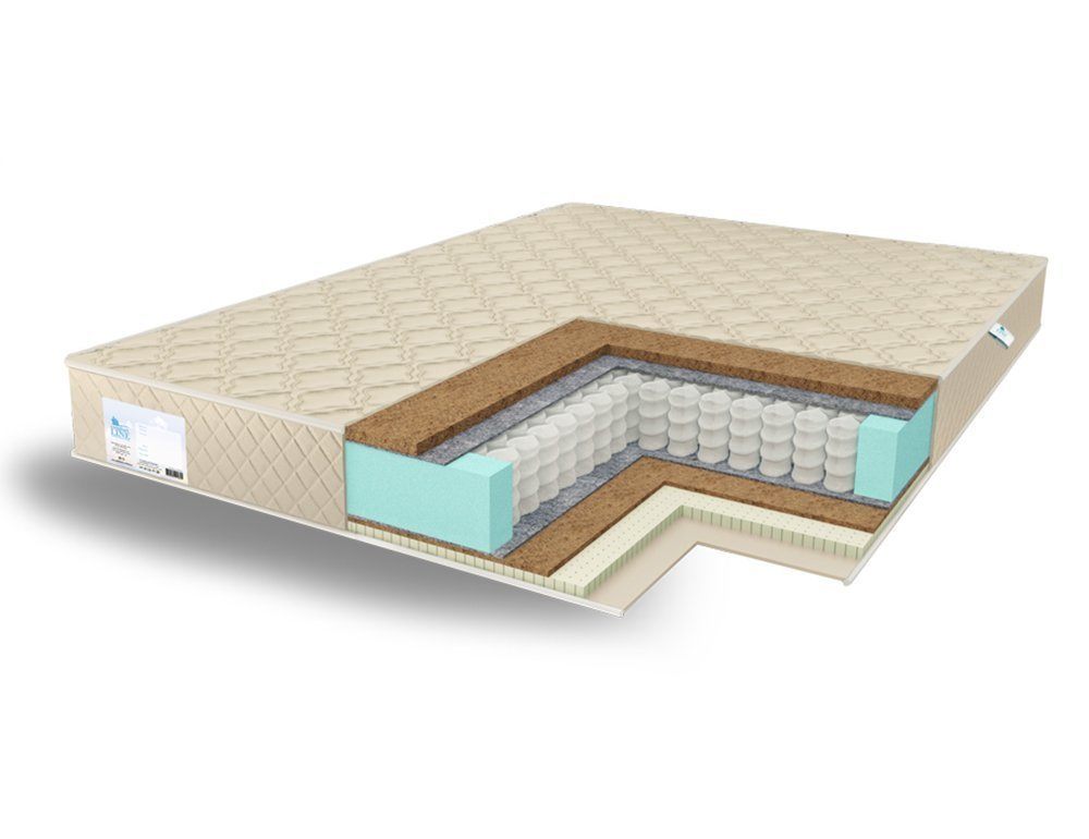 Наполнители в модели подобраны таким образом, что продолжают работу блока TFK. В первую очередь койра помогает правильно распределить вес по всей поверхности матраса, обеспечивая тем самым правильный режим работы изделия. Кроме того, кокос отлично подстраивается под изгибы силуэта, что даёт ему в свою очередь возможность обеспечивать правильное положение человека во сне. Натуральный латекс выступает в качестве слоя комфорта, он смягчает поверхность и придаёт ей адаптивность, чтобы отдыхающий мог ещё быстрее расслабиться и почувствовать уют.