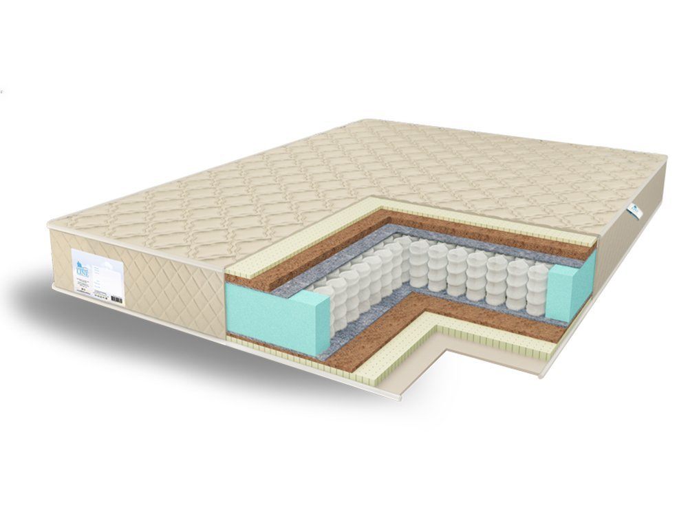Внутри матраса установлена комбинация высококачественных материалов – натуральных латекса и кокоса. Они проложены сразу с двух сторон, но в разной толщине. Это и придаёт поверхностям различные степени мягкости.