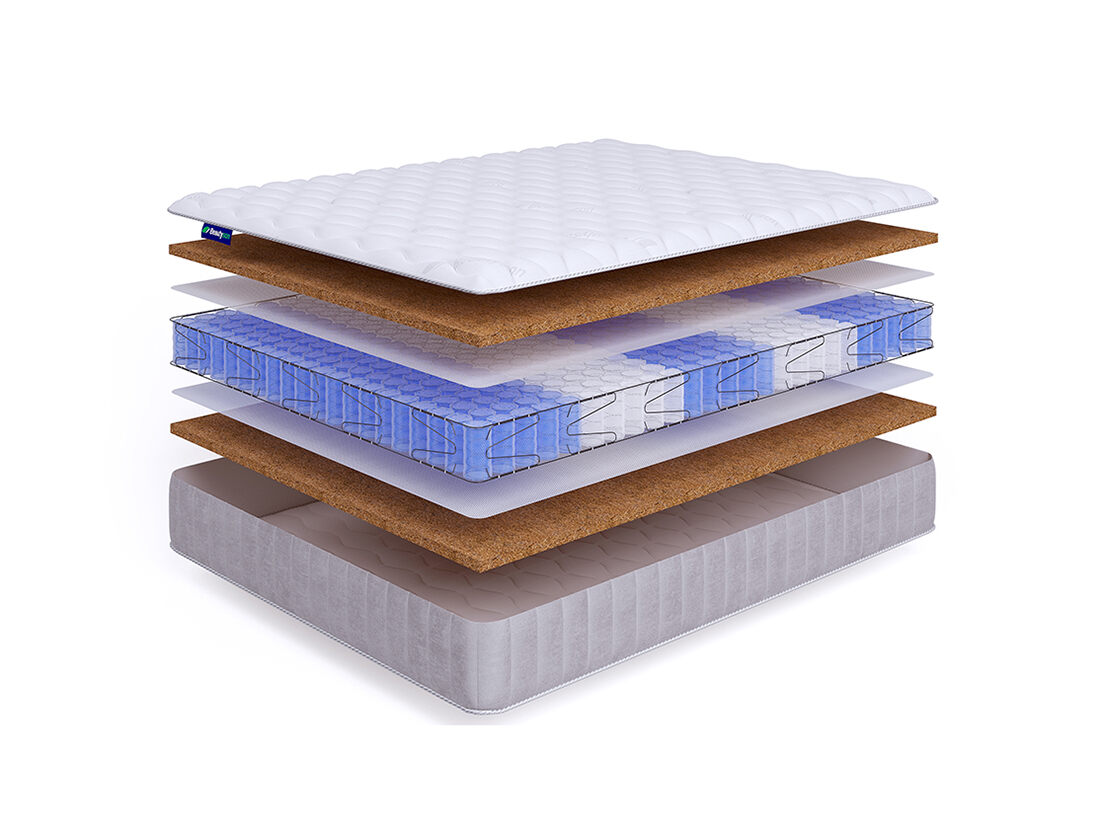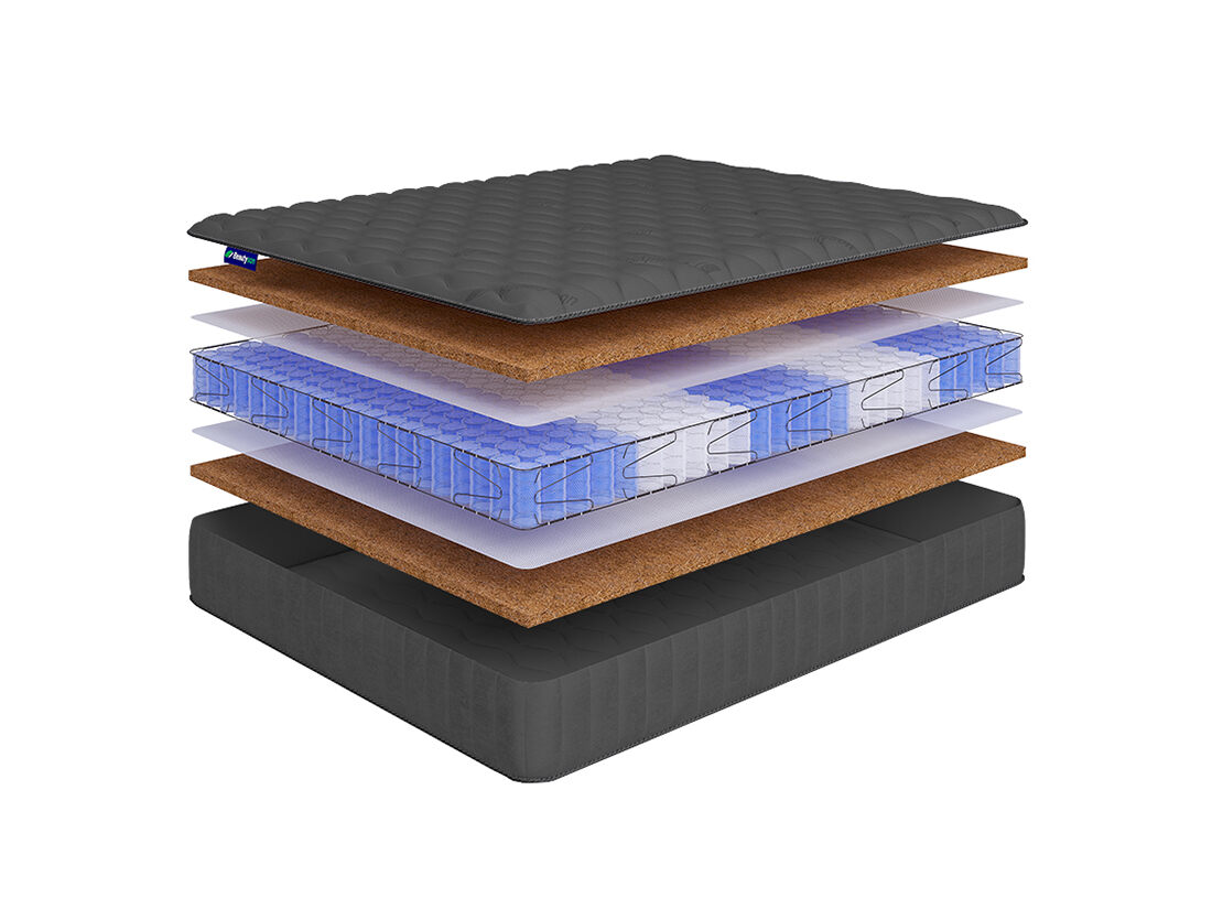 Матрас с разной жёсткостью сторон Hit Hard Lux TFK+ выполнен на основе независимого пружинного блока плотностью 600 пружин на спальное место и натурального кокосового волокна. Мультизональный пружинный блок имеет 5 различных зон жёсткости, соответствующих различным частям тела, обеспечивая тем самым равномерное распределение веса спящего и нахождение позвоночника в естественном положении. Натуральный наполнитель матраса - плита прессованного кокосового волокна - обеспечивает непревзойдённую ортопедическую поддержку. Кокосовое волокно обладает превосходной воздухопроницаемостью, обеспечивая естественную вентиляцию спального места. Благодаря прочному пружинному блоку, усиленному боковыми пружинами, и жёсткому наполнителю матрас способен выдерживать значительные нагрузки (до 140 кг на одно спальное место).