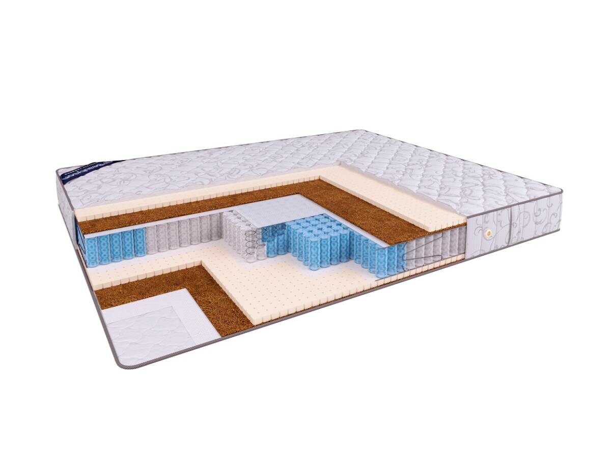 Матрас Hit Middle S1200 выполнен на основе пружинного блока "Мультипакет" (1200 пружин на спальное место), обеспечивающего оптимальную анатомическую поддержку спящему человеку. Пять различных зон жёсткости в пружинном блоке матраса соответствуют различным зонам тела человека, обеспечивая равномерное распределение веса тела и нахождение позвоночника в естественном положении. Благодаря своей несимметричной конструкции матрас имеет разную жёсткость сторон: он более жёсткий с той стороны, где поверхностным наполнителем является слой кокосовой койры, и более мягкий - с обратной "латексной" стороны. Вы самостоятельно можете подобрать для себя наиболее комфортную сторону, просто переворачивая матрас.