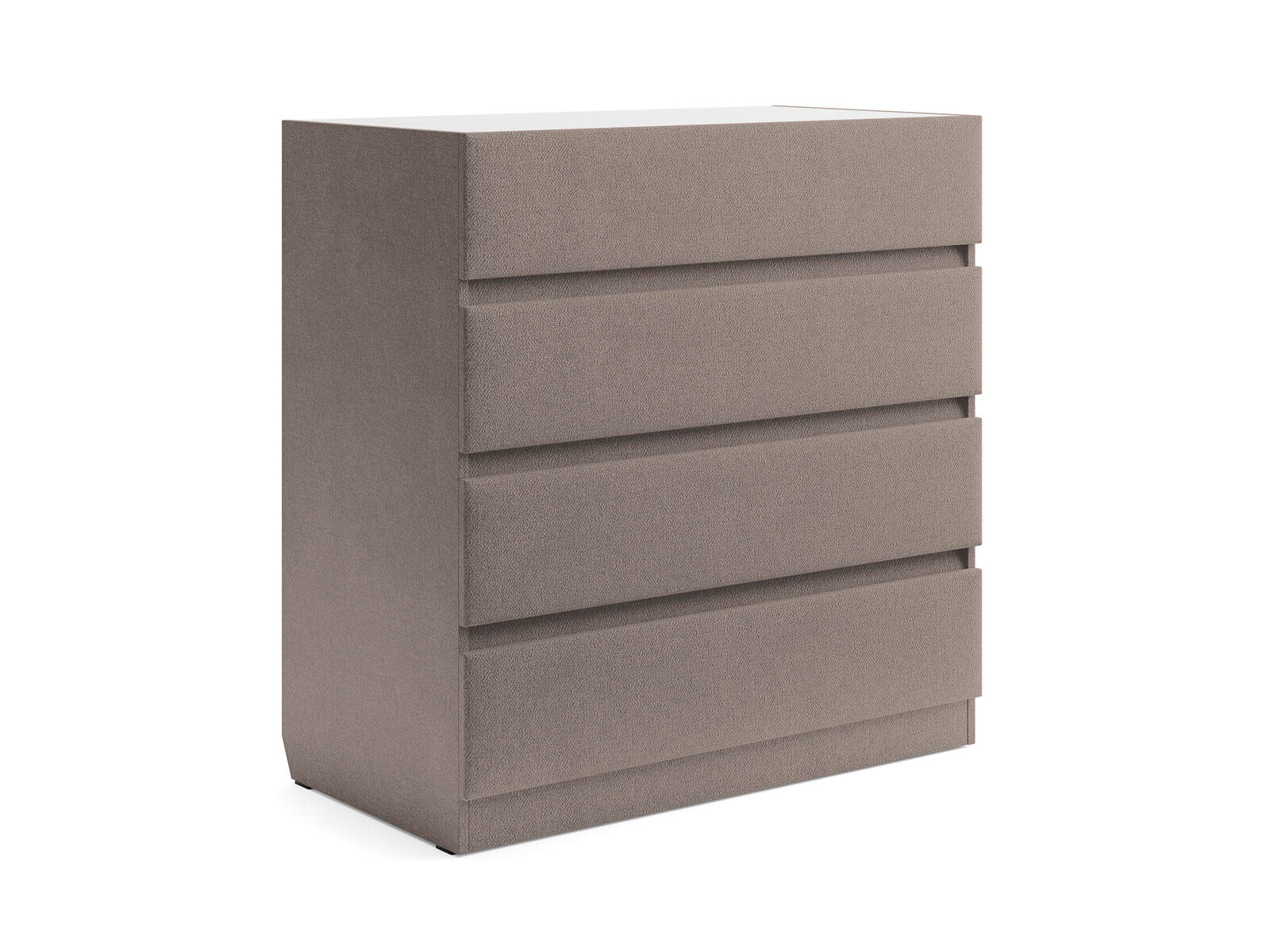 Комод Omega выполнен в современном стиле. Прямые линии, отсутствие ручек и просвета от пола, делают его универсальным, позволяя комплектовать комод с тумбами Omega и кроватями, имеющими лаконичное изголовье. Четыре выдвижных ящика с направляющими скрытого монтажа оснащены доводчиками. Задняя стенка выполнена из ДСП и обита спанбондом, это делает комод устойчивым и прочным. Комод Omega имеет скос под плинтус, это позволяет устанавливать его вплотную к стене. Можно укомплектовать стеклянной столешницей. Широкий выбор фактур и цветов исполнения.