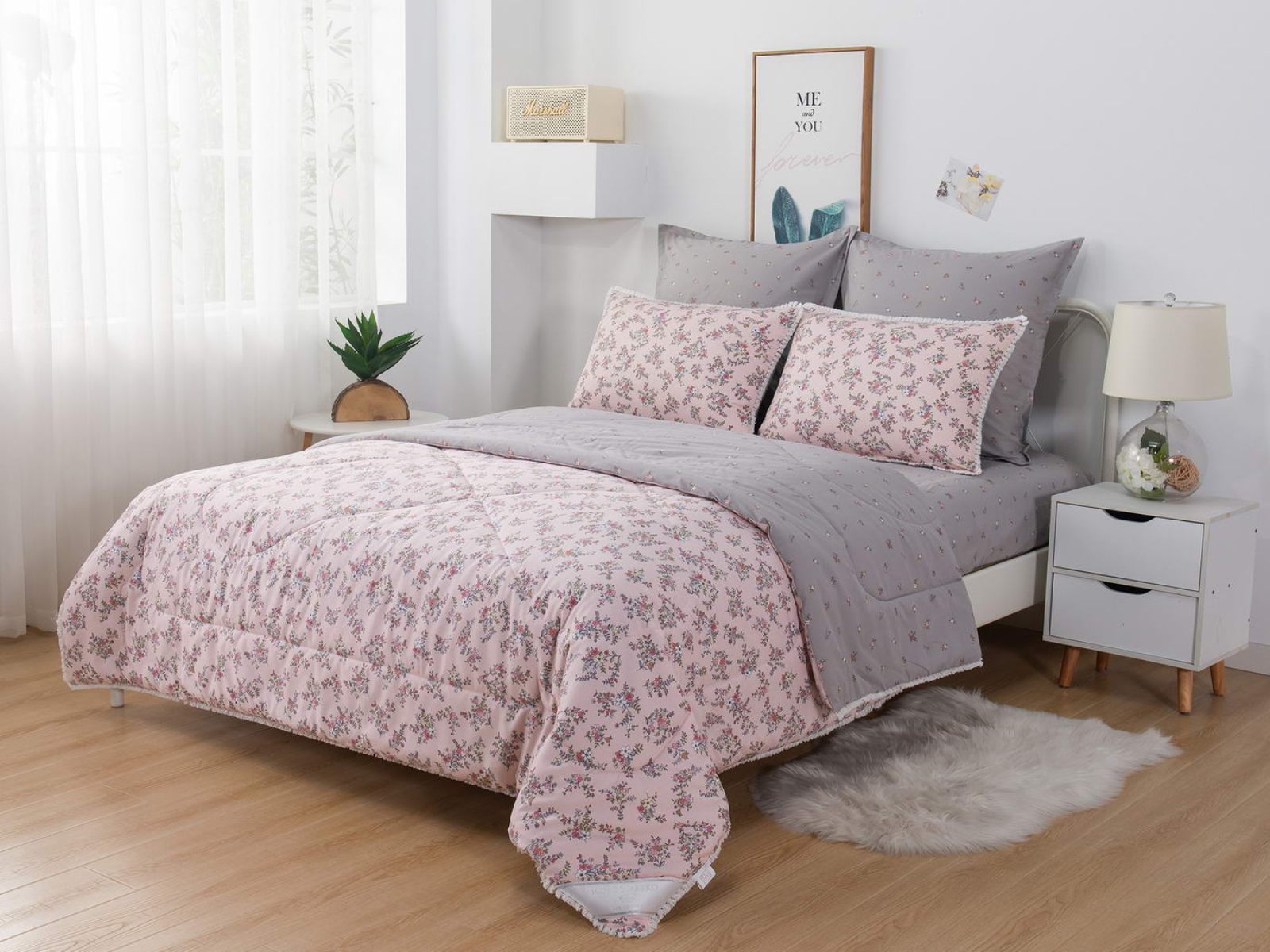 В комплекты комфортеров с одеялом Бернадетт входят наволочки, простыня и легкое всесезонное одеяло. Оцените это современное и очень удобное решение, которое идеально подходит тем, кто не любит возиться с пододеяльниками.
