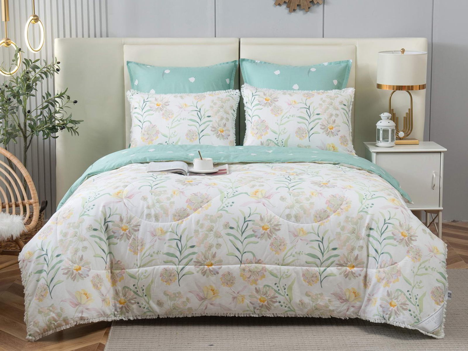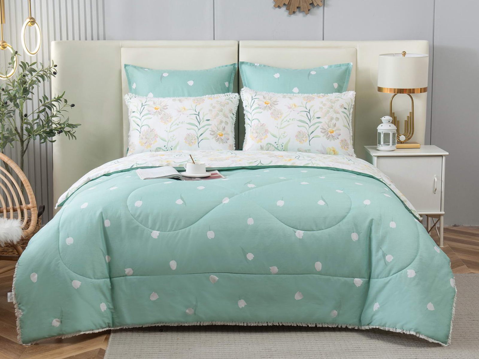 В комплекты комфортеров с одеялом Бернадетт входят наволочки, простыня и легкое всесезонное одеяло. Оцените это современное и очень удобное решение, которое идеально подходит тем, кто не любит возиться с пододеяльниками.