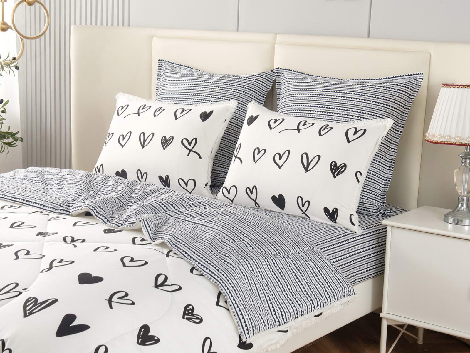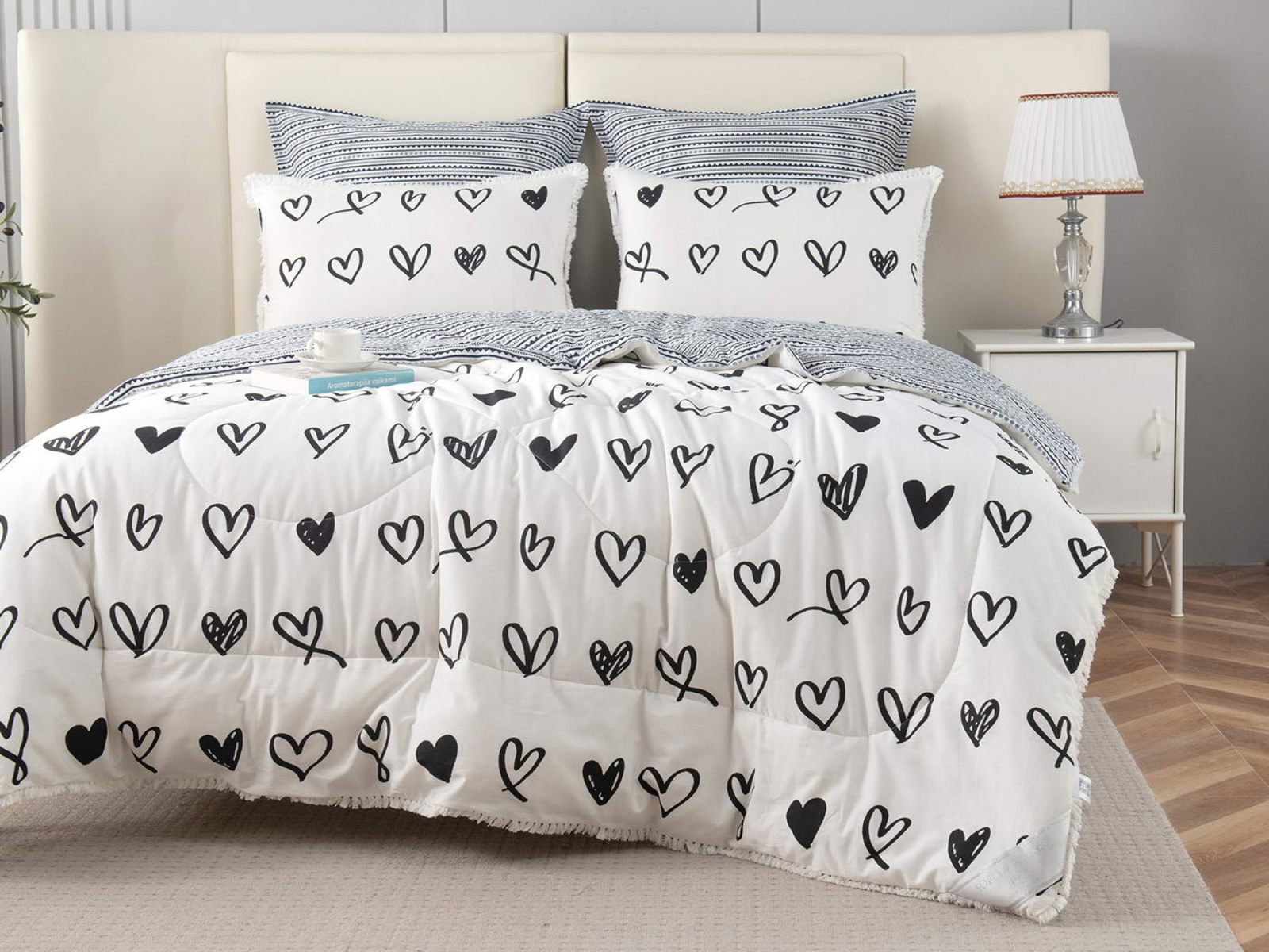В комплекты комфортеров с одеялом Бернадетт входят наволочки, простыня и легкое всесезонное одеяло. Оцените это современное и очень удобное решение, которое идеально подходит тем, кто не любит возиться с пододеяльниками.