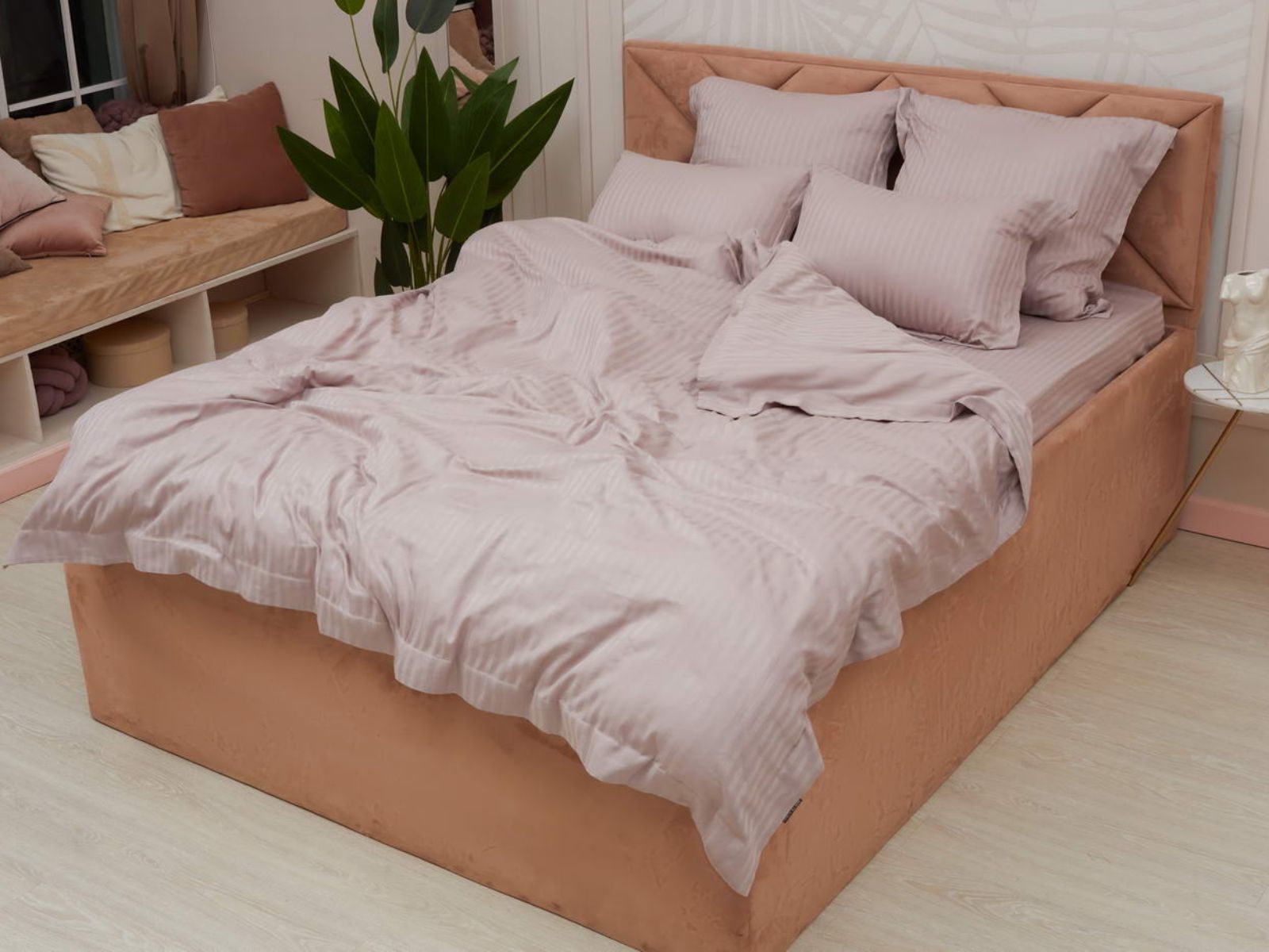Постельное белье Моне, изготовленное из высококачественного страйп-сатина, станет украшением Вашей спальни. Комплекты представлены в 17 оттенках: от пастельных, до ярких насыщенных тонов. Такая палитра никого не оставит равнодушным. Особое плетение ткани образует узор в виде чередующихся полос, это придает постельному белью изысканность, гладкость и блеск.