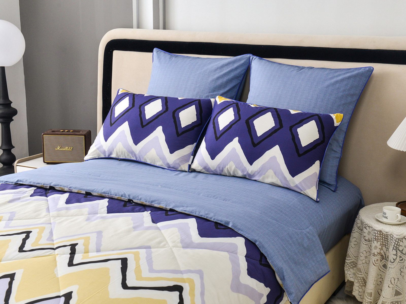 Особенность: двусторонняя модель, наволочки и одеяла декорированы кантом.