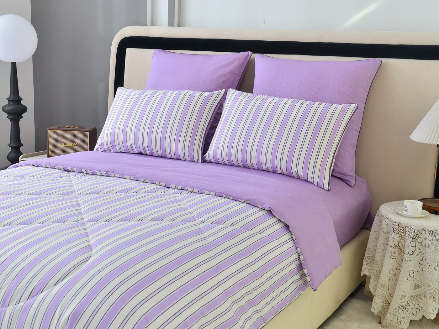 В комплект входит легкое, мягкое, летнее одеяло. Его можно стирать вместе с другим бельем, оно быстро сохнет и после стирки его не нужно гладить.