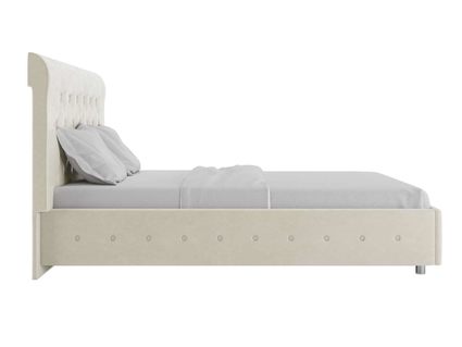 Для обивки кровати используется велюр – мягкий и бархатный материал, который дарит очень нежные соприкосновения. При стандартной комплектации обратная сторона изголовья выполняется из технического материала. Однако по желанию его можно заменить на основную обивку кровати.