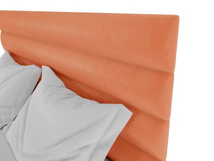 Кровать исполняется в обивке из велюра, который подарит Вам нежные и мягкие соприкосновения. При стандартной комплектации обратная сторона изголовья выполняется из технического материала. Однако по желанию его можно заменить на основную обивку кровати.