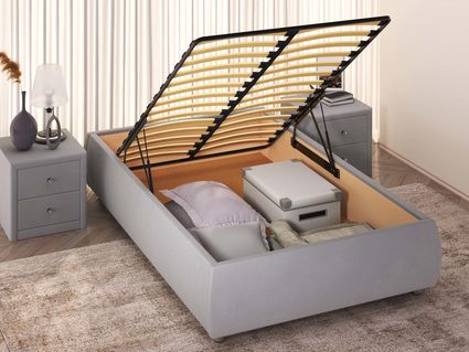 Тира в варианте с подъемным механизмом отлично подойдет, как во взрослую спальню, так и в подростковую комнату. Кровать оснащена бельевым ящиком, который облегчит хранение спальных комплектов или других вещей.