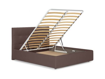 Кровать оснащена основанием с ламелями и подъемным механизмом. Рекомендуемая высота матраса до 27 см, вес матраса до 50 кг.