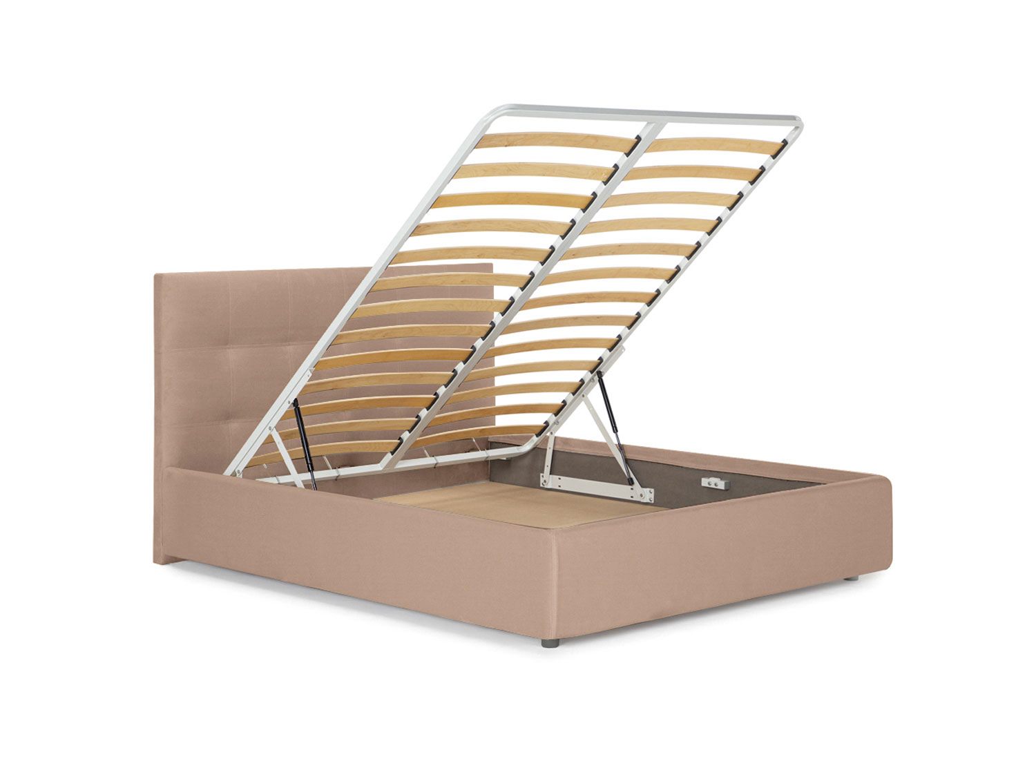Кровать оснащена основанием с ламелями и подъемным механизмом. Рекомендуемая высота матраса до 27 см, вес матраса до 50 кг.