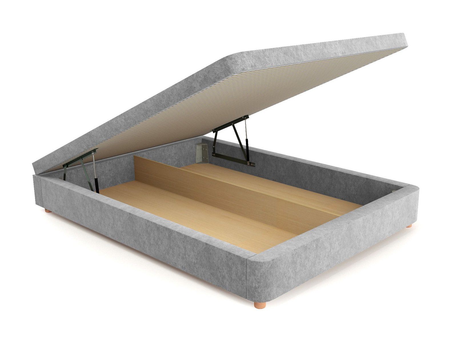 Отличительная черта кроватного бокса Flip Box в его уникальном подъемном механизме. Он не скрипит, очень прочный, легко поднимается и опускается с помощью доводчиков. Удобный принцип работы без дополнительных усилий или нагрузок. Благодаря нашему уникальному подъемному механизму, бокс встает не только в вертикальное, но и в горизонтальное положение, что обеспечивает беспрепятственный доступ к пространству под основанием кровати, открывая просторную и высокую нишу для хранения вещей. В отсеке под кроватью без труда разместятся подушки, одеяла, пледы и другие постельные принадлежности. Такая кровать по объему хранения прекрасно заменит шкаф или комод и избавит от загромождения комнаты лишней мебелью. Бокс легко открывается, оборудован ручкой или ремнем для поднятия основания с матрасом. Существенная экономия свободной площади в спальной комнате и квартире в целом.