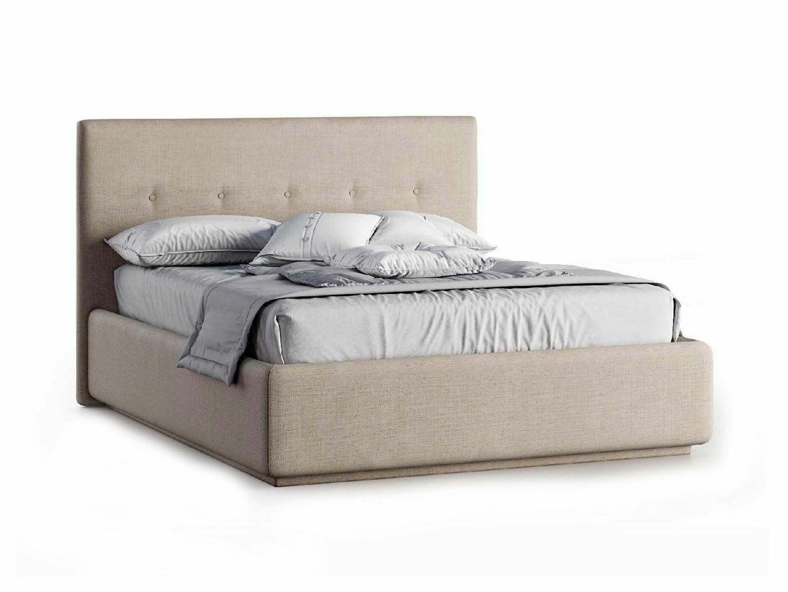 Кровать укомплектована IQ с подъемным механизмом и ящиком для белья без дна (дополнительная платная опция - дно к ящику IQ из HDF (ХДФ). Каркас кровати на цоколе, декоративный чехол на цоколе съёмный. Глубина ящика для белья - 30 см, без ограничения нагрузки на ящик.