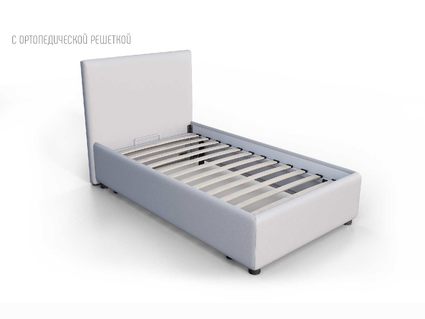 Кровать укомплектована ортопедическим основанием на ножках с березовыми ламелями (расстояние между ламелями 7.8 см).