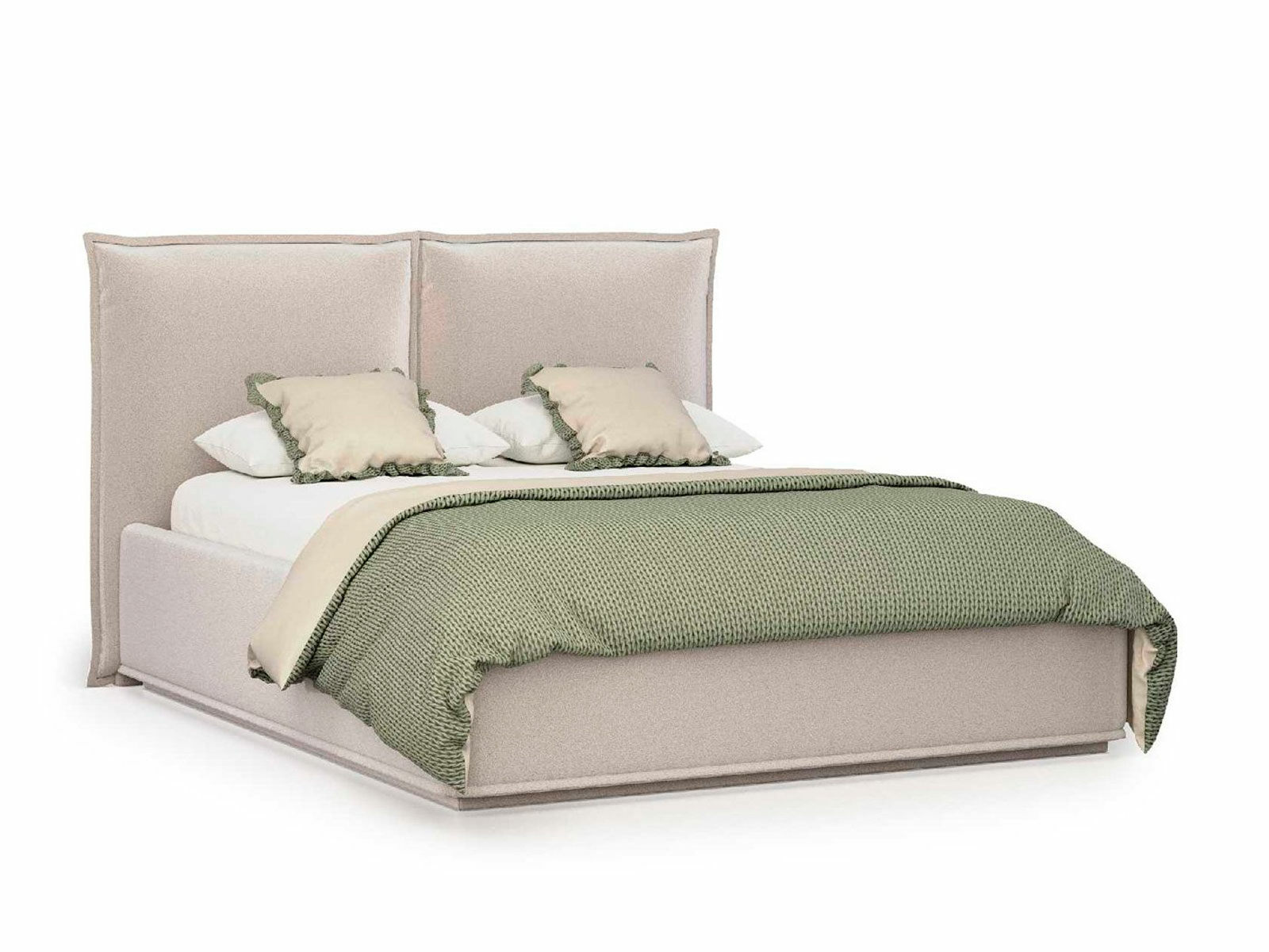 Кровать укомплектована IQ с подъемным механизмом и ящиком для белья без дна (дополнительная платная опция - дно к ящику IQ из HDF (ХДФ). Каркас кровати на цоколе, декоративный чехол на цоколе съёмный. Глубина ящика для белья - 30 см, без ограничения нагрузки на ящик.