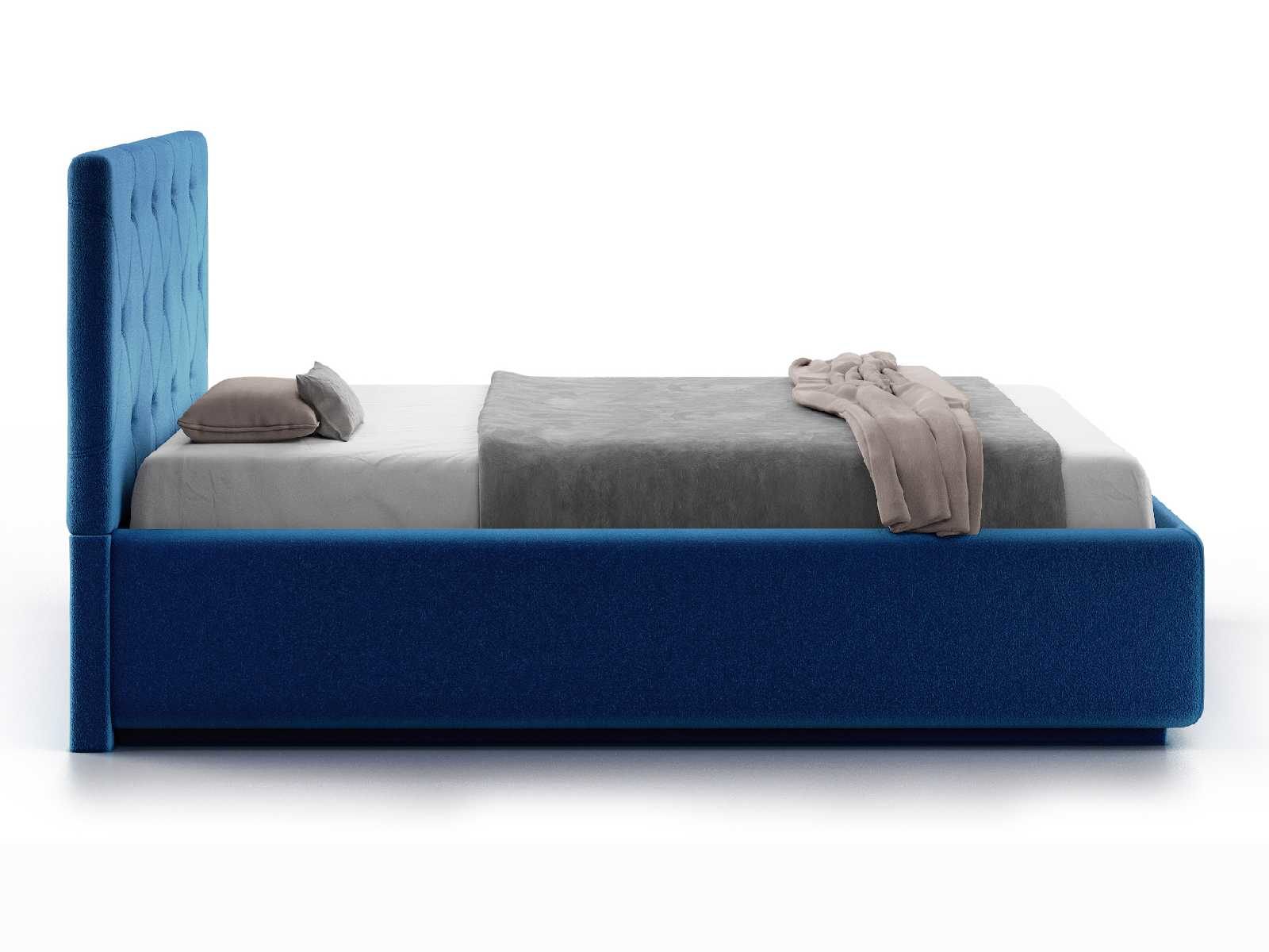 Кровать укомплектована IQ с подъемным механизмом и ящиком для белья без дна (дополнительная платная опция - дно к ящику IQ из HDF (ХДФ). Каркас кровати на цоколе, декоративный чехол на цоколе съёмный. Глубина ящика для белья - 30 см, без ограничения нагрузки на ящик.