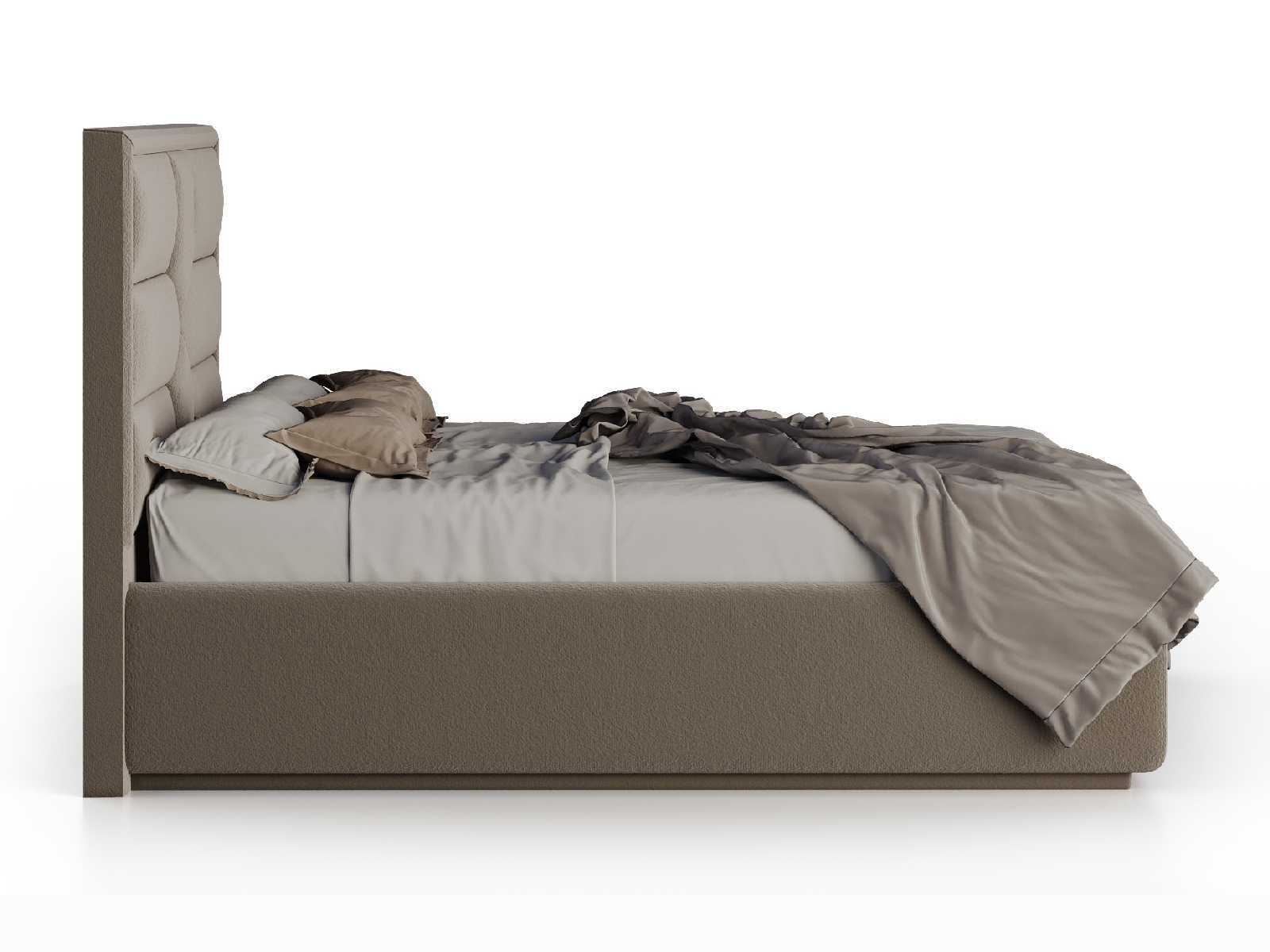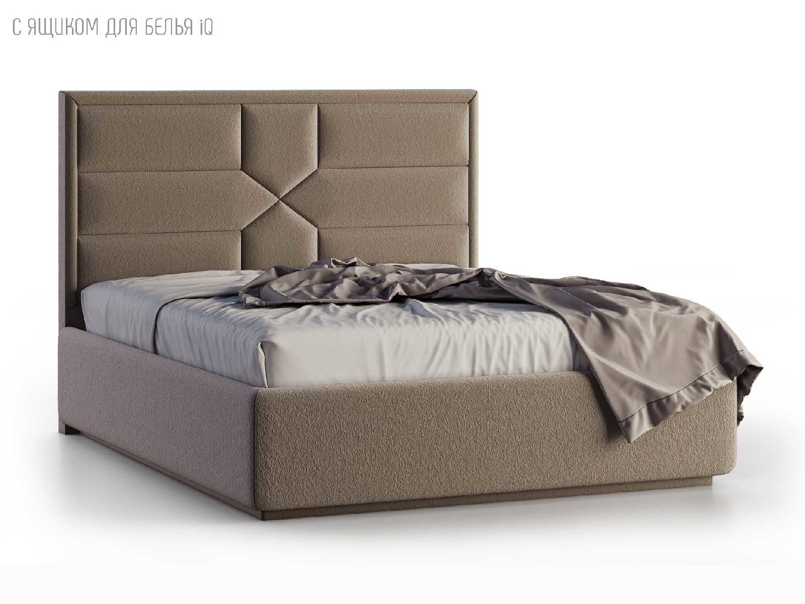 Кровать укомплектована IQ с подъемным механизмом и ящиком для белья без дна (дополнительная платная опция - дно к ящику IQ из HDF (ХДФ). Каркас кровати на цоколе, декоративный чехол на цоколе съёмный. Глубина ящика для белья - 30 см, без ограничения нагрузки на ящик.