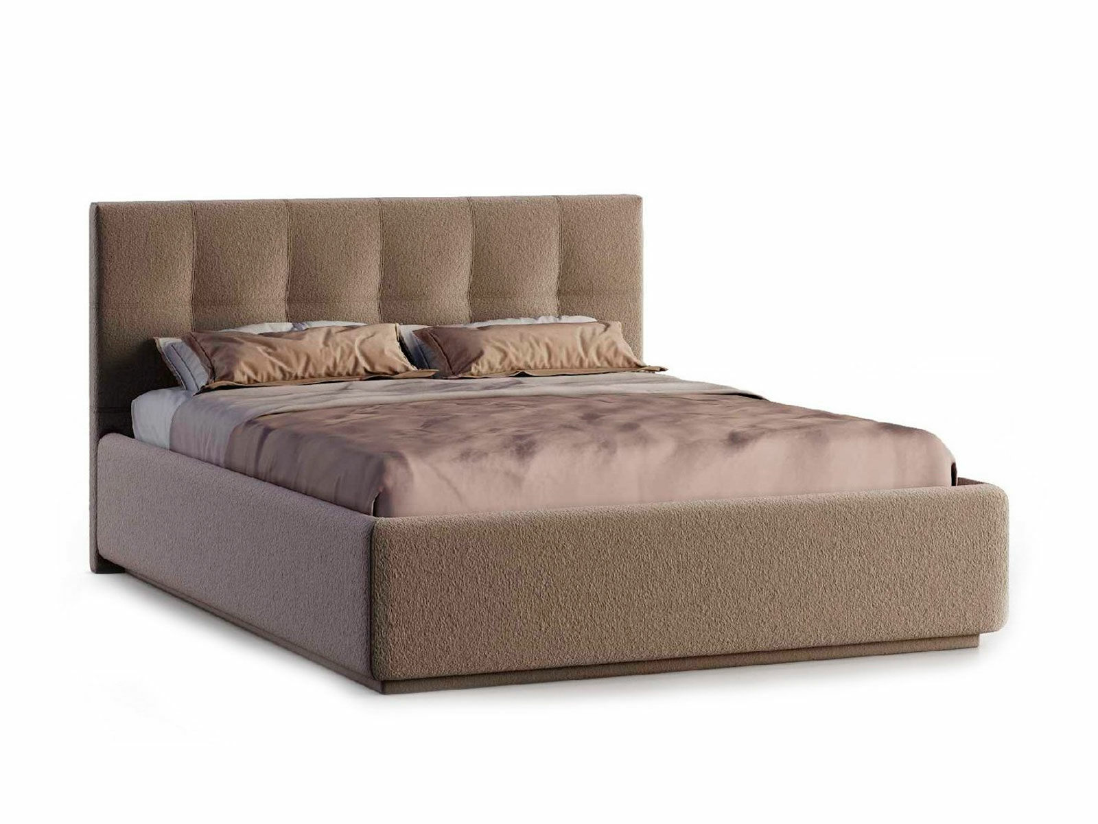 Кровать укомплектована IQ с подъемным механизмом и ящиком для белья без дна (дополнительная платная опция - дно к ящику IQ из HDF (ХДФ). Каркас кровати на цоколе, декоративный чехол на цоколе съёмный. Глубина ящика для белья - 30 см, без ограничения нагрузки на ящик.