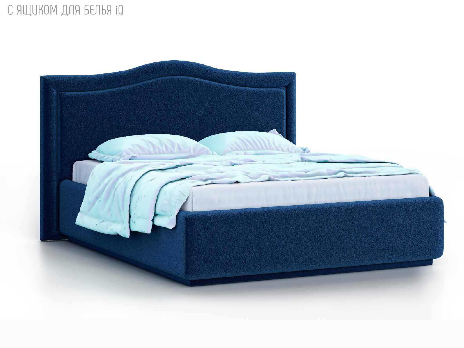 Кровать укомплектована IQ с подъемным механизмом и ящиком для белья без дна (дополнительная платная опция - дно к ящику IQ из HDF (ХДФ). Каркас кровати на цоколе, декоративный чехол на цоколе съёмный. Глубина ящика для белья - 30 см, без ограничения нагрузки на ящик.