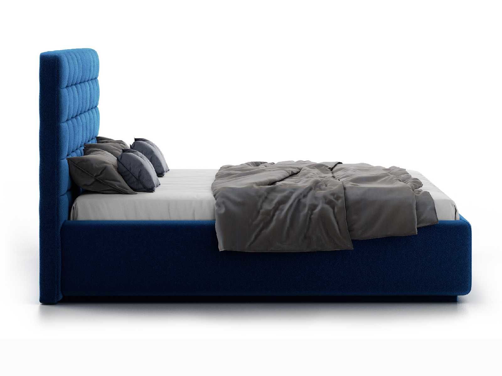 Кровать укомплектована IQ с подъемным механизмом и ящиком для белья без дна (дополнительная платная опция - дно к ящику IQ из HDF (ХДФ). Каркас кровати на цоколе, декоративный чехол на цоколе съёмный. Глубина ящика для белья - 30 см, без ограничения нагрузки на ящик.