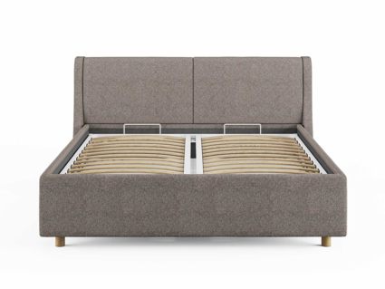 Кровать комплектуется металлическим основанием и подъемным механизмом со вместительным бельевым ящиком. Дно бельевого ящика легко сдвигается для обеспечения уборки под кроватью.