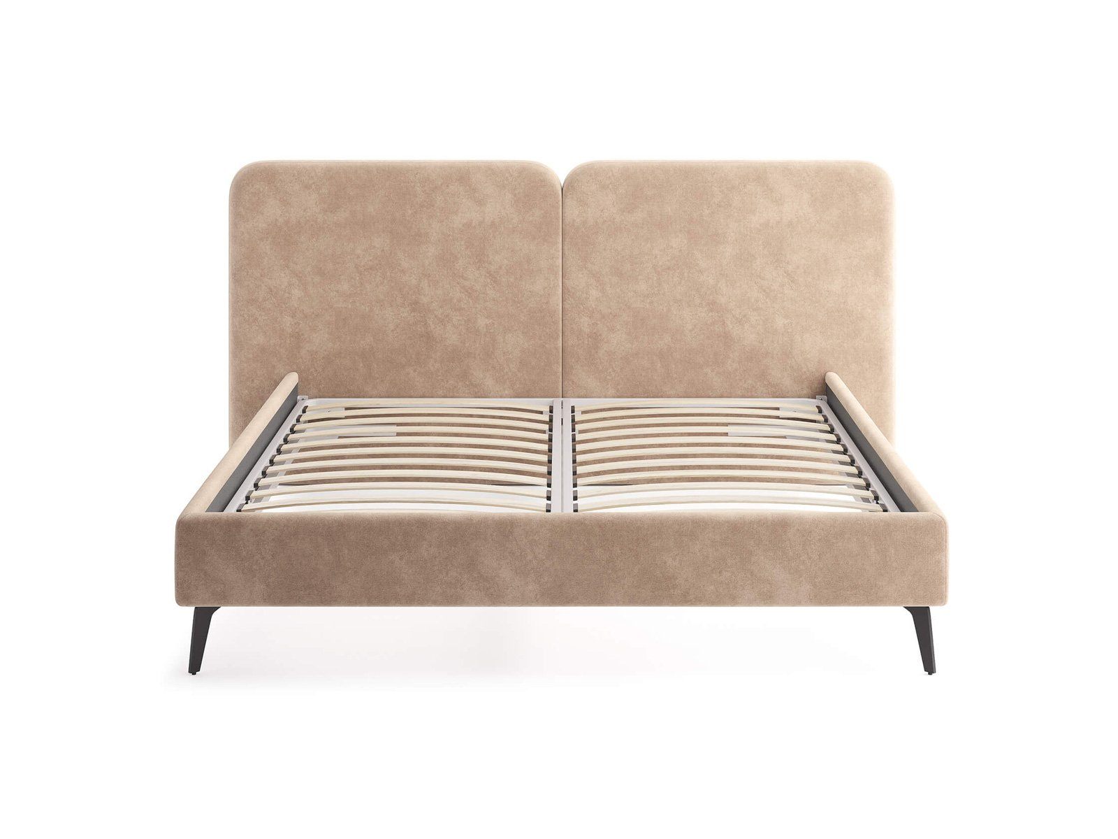 Дизайн кровати удачно подойдет для интерьеров в современном, стиле mid-century модерн. Закругленные углы, узкие царги, металлические опоры черного цвета выделяют Brooklyn из многообразия интерьерных моделей и делают ее востребованной для дизайнерских интерьеров. Изголовье выполнено в виде двух мягких подушек, они крепятся друг к другу с помощью прочного клинового соединения. Задняя часть спинки изготавливается в основной ткани - кровать можно установить в центре комнаты. Узкие царги и изящные металлические опоры, делают кровать легкой и лаконичной. Прочность кровати достигается за счет металлического каркаса по периметру. Модель укомплектована ортопедическим основанием. Расстояние до царг способствует легкой уборке под кроватью, в том числе роботом – пылесосом.